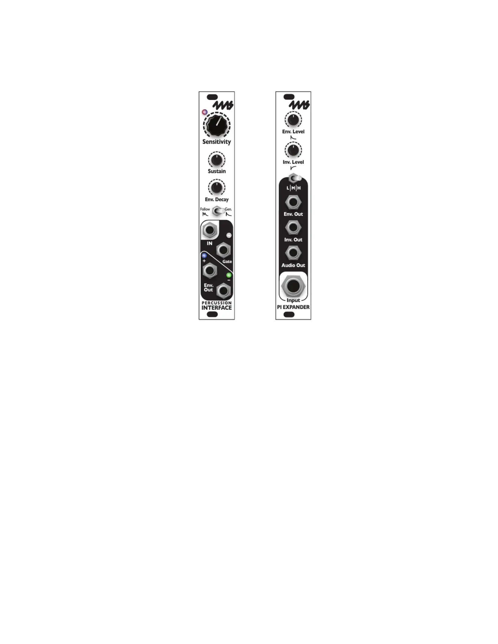 The and Percussion Interface (PI) PI Expander are a pair of Eurorack modules that generate gates