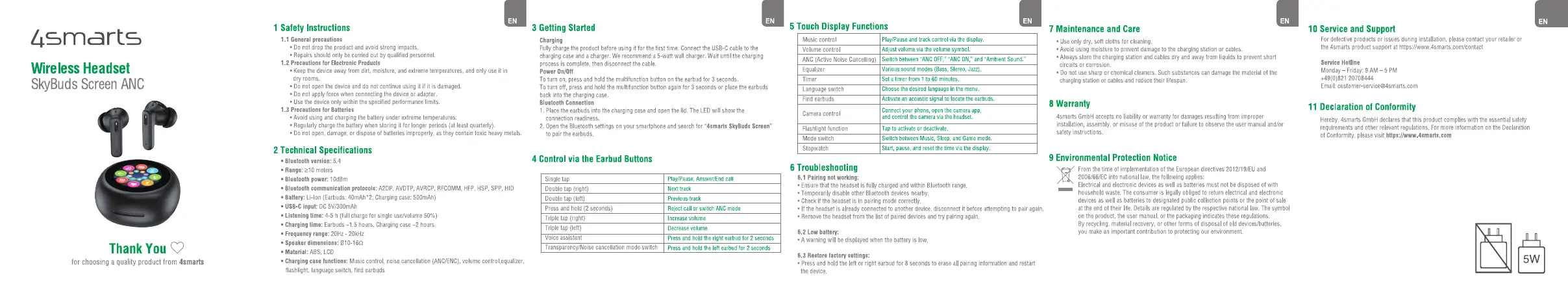 4smarts SkyBuds Screen ANC Bruksanvisning