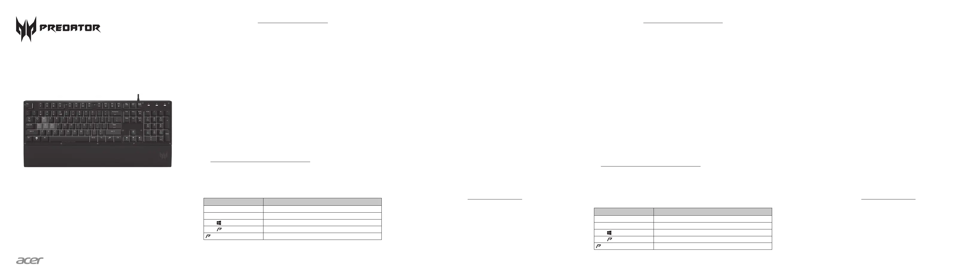 Läs gratis den bruksanvisning för Acer Predator Aethon 100 (2 sidor) i kategorin Tangentbord. Guiden har ansetts hjälpsam av 28 personer och har ett genomsnittsbetyg på 4.0 stjärnor baserat på 2 recensioner. Har du en fråga om Acer Predator Aethon 100 eller vill du ställa frågor till andra användare av produkten? Ställ en fråga