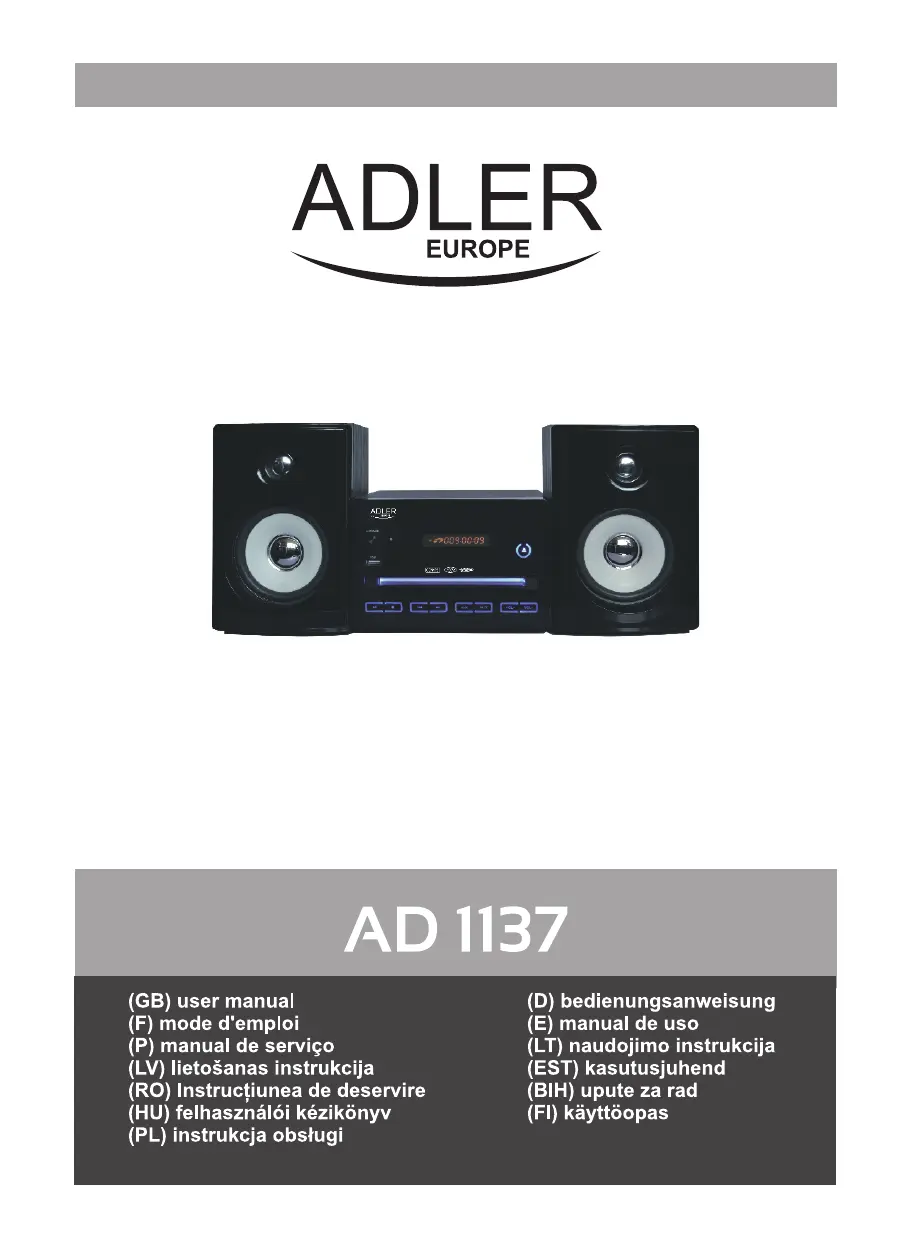 Läs gratis den bruksanvisning för Adler AD 1137 (41 sidor) i kategorin Ljudsystem. Guiden har ansetts hjälpsam av 5 personer och har ett genomsnittsbetyg på 4.7 stjärnor baserat på 3 recensioner. Har du en fråga om Adler AD 1137 eller vill du ställa frågor till andra användare av produkten? Ställ en fråga