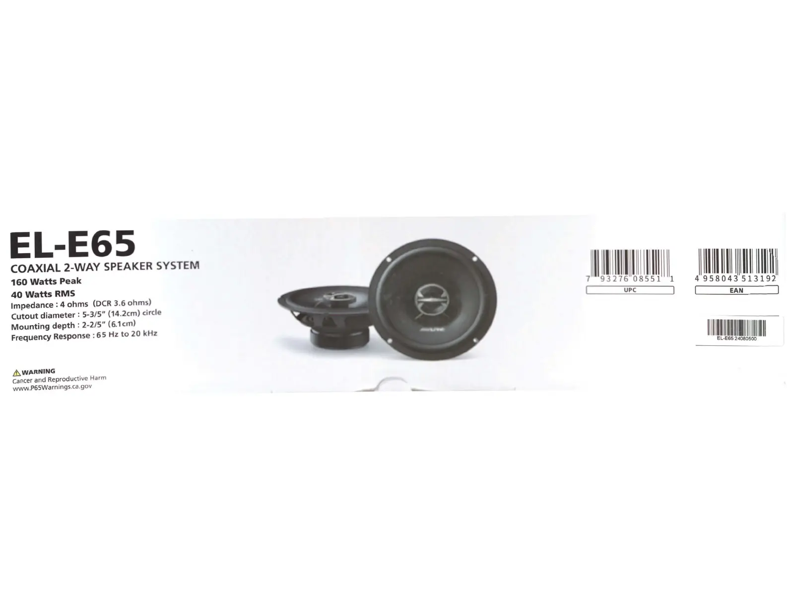 Läs gratis den bruksanvisning för Alpine EL-E65 (3 sidor) i kategorin högtalare. Guiden har ansetts hjälpsam av 4 personer och har ett genomsnittsbetyg på 4.5 stjärnor baserat på 2.5 recensioner. Har du en fråga om Alpine EL-E65 eller vill du ställa frågor till andra användare av produkten? Ställ en fråga