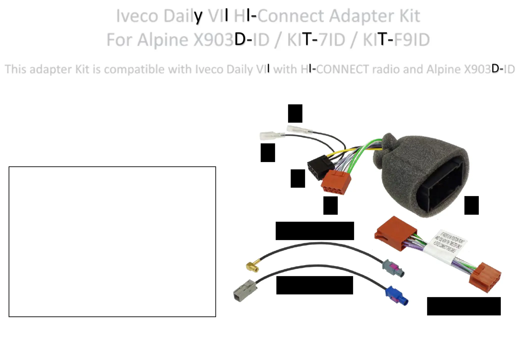 This adapter Kit is compatible with Iveco Daily VI with H CONNECT radio and Alpine X903 ID