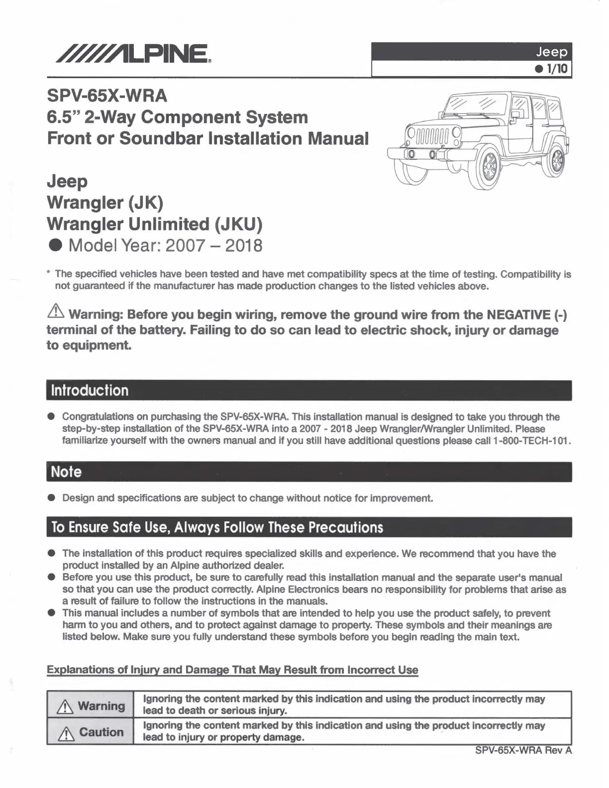 the SPV-65X-WRA into a 2007 - 2018 Jeep Wrangler/Wrangler Unlimited. Please