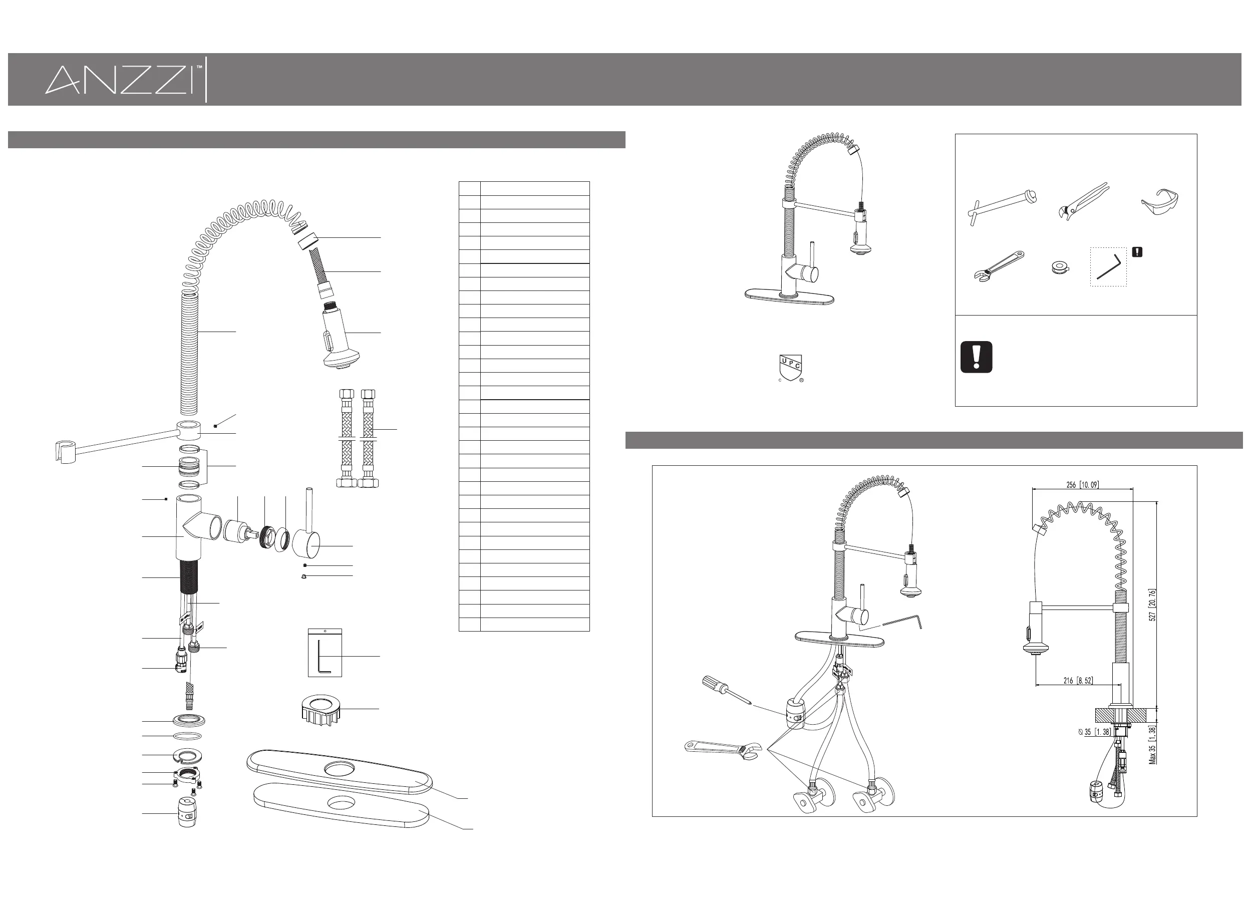 for easy installation, you will need: