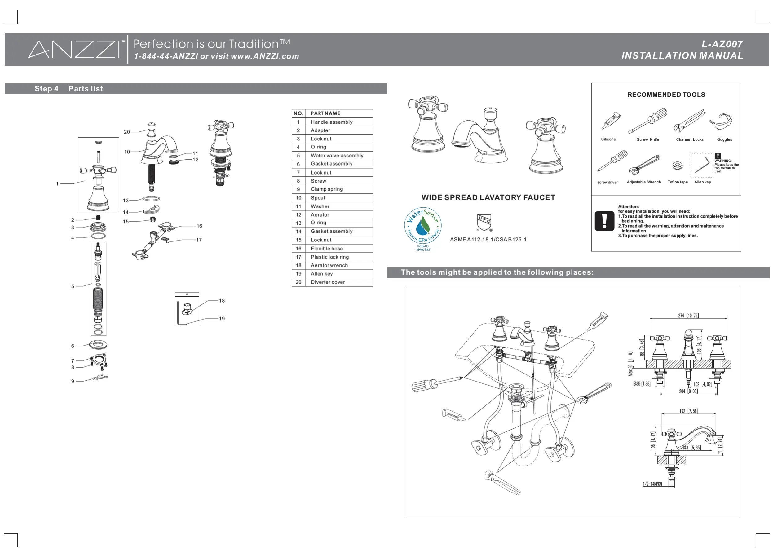 Läs gratis den bruksanvisning för ANZZI L-AZ007 (2 sidor) i kategorin Kran. Guiden har ansetts hjälpsam av 2 personer och har ett genomsnittsbetyg på 4.7 stjärnor baserat på 8 recensioner. Har du en fråga om ANZZI L-AZ007 eller vill du ställa frågor till andra användare av produkten? Ställ en fråga