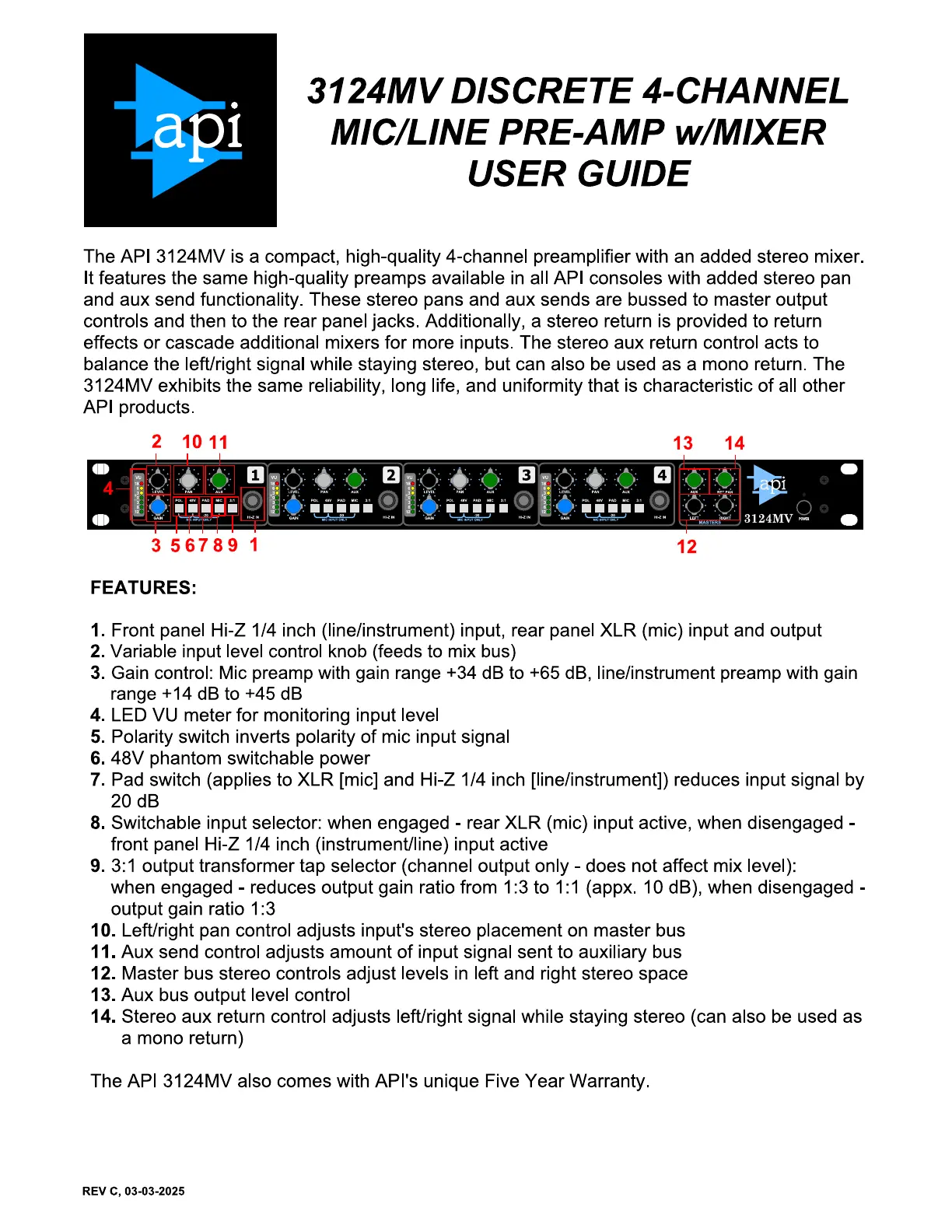 API Audio 3124MV Bruksanvisning