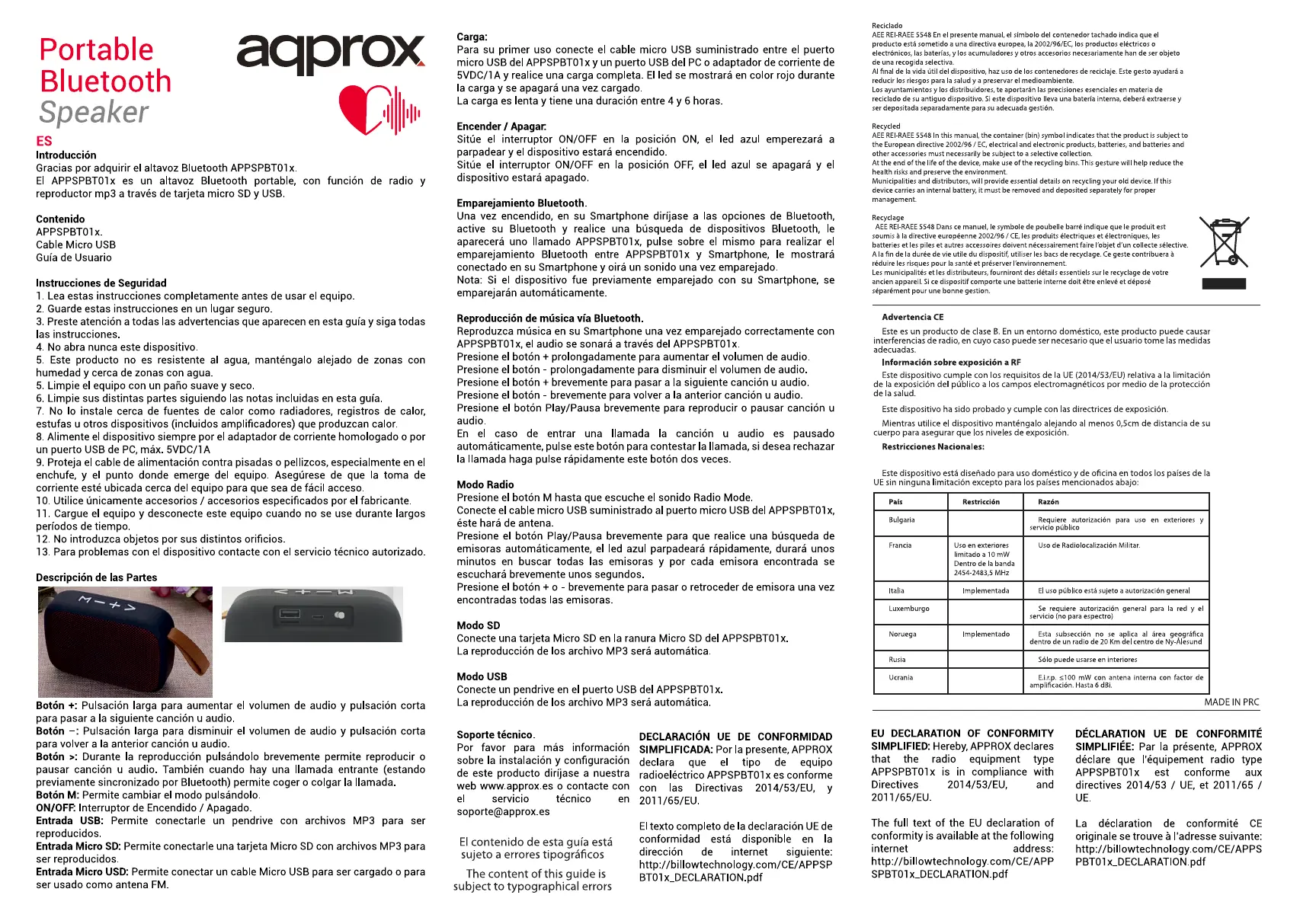 Approx APPSPBT01BR Bruksanvisning