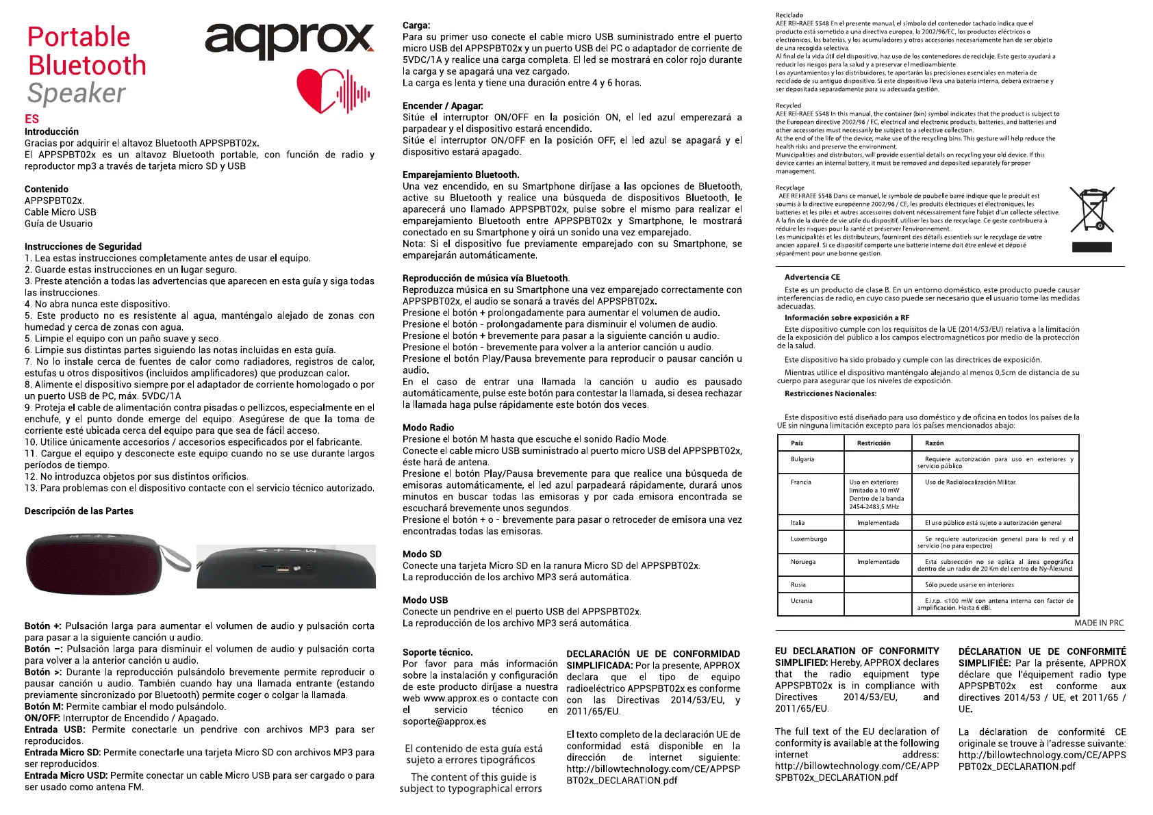 Approx APPSPBT02BBL Bruksanvisning