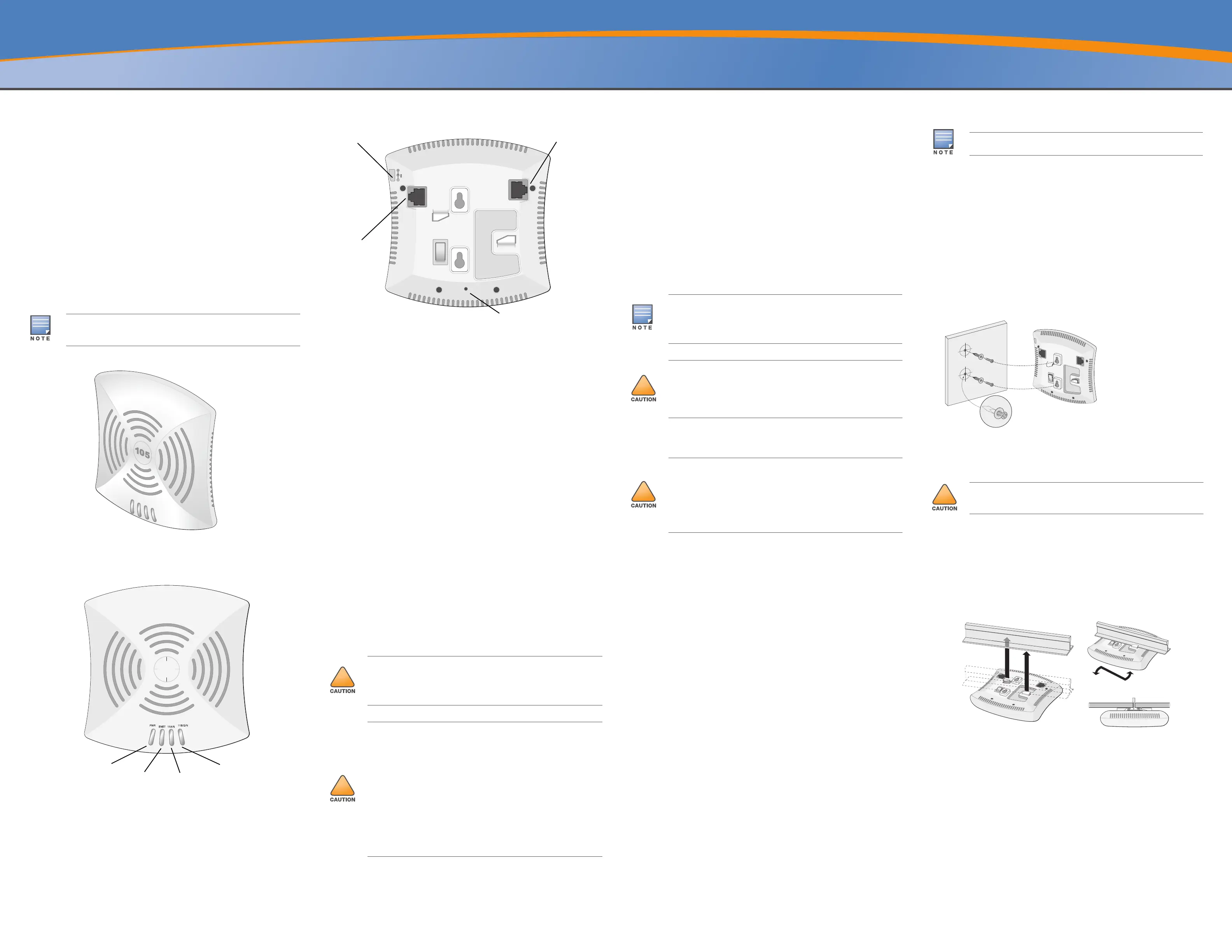 You can mount the IAP-105 access point on a wall or on the ceiling. Each