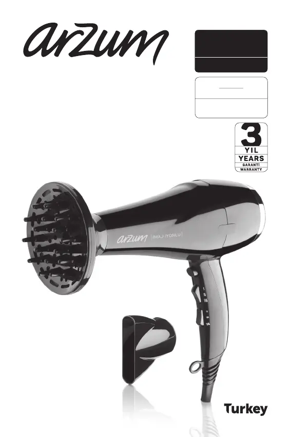 Läs gratis den bruksanvisning för Arzum İMAJ AR5010 (24 sidor) i kategorin Hårtork. Guiden har ansetts hjälpsam av 20 personer och har ett genomsnittsbetyg på 3.5 stjärnor baserat på 10.5 recensioner. Har du en fråga om Arzum İMAJ AR5010 eller vill du ställa frågor till andra användare av produkten? Ställ en fråga