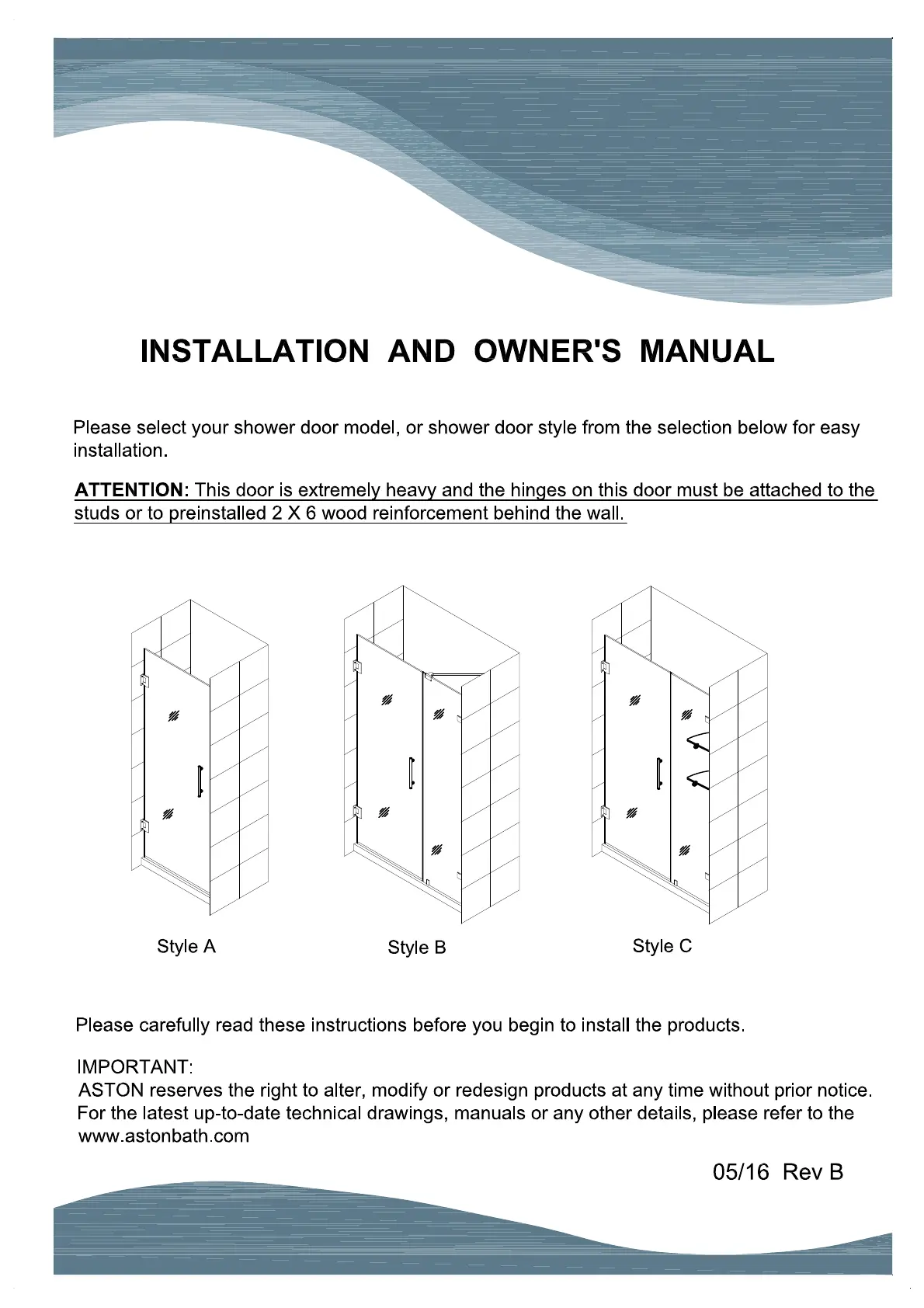 Duschsystem Aston Manualer
