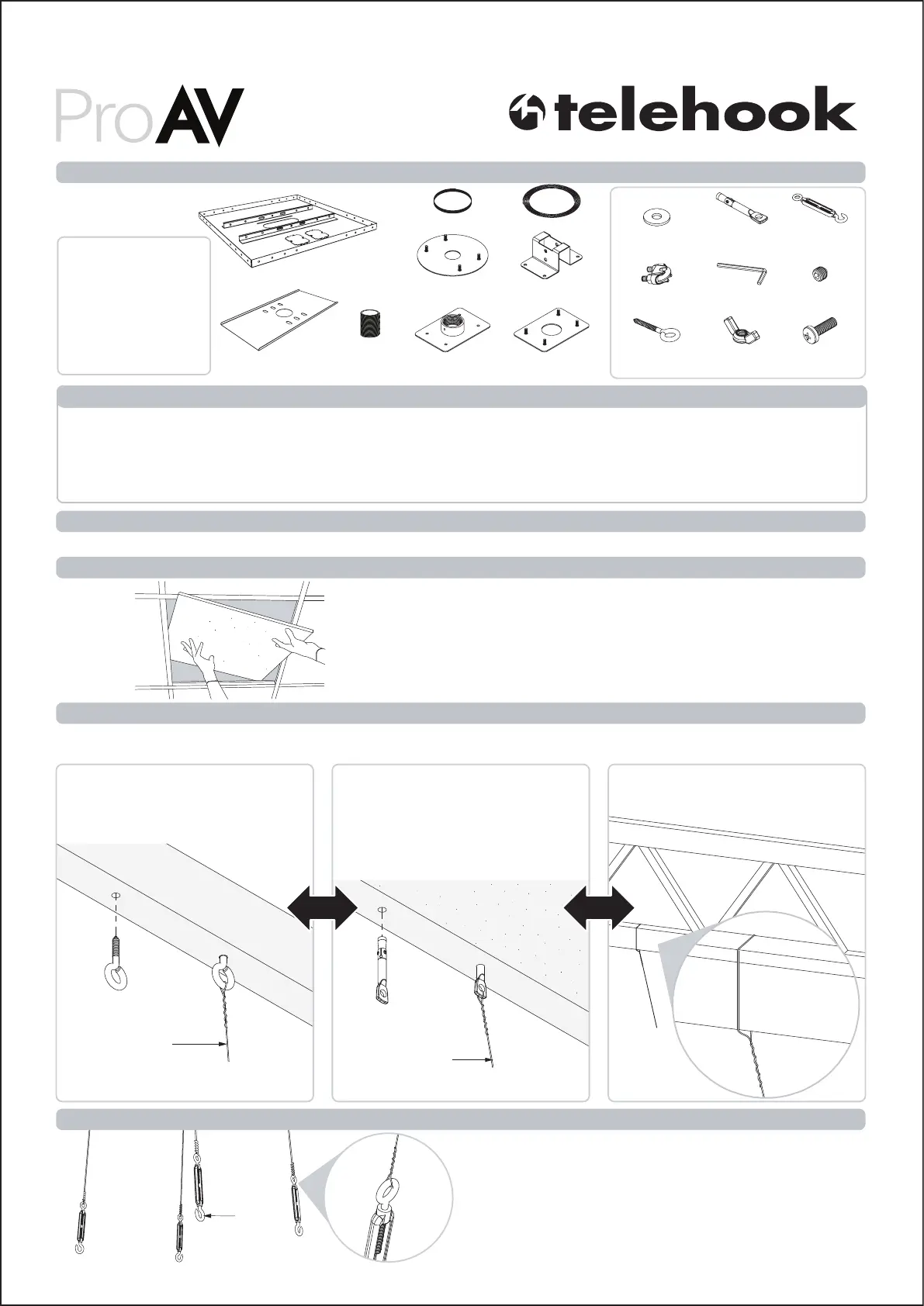 ! IMPORTANT - Install Telehook Projector - Suspended Ceiling Tile 24" as per Installation Instructions.