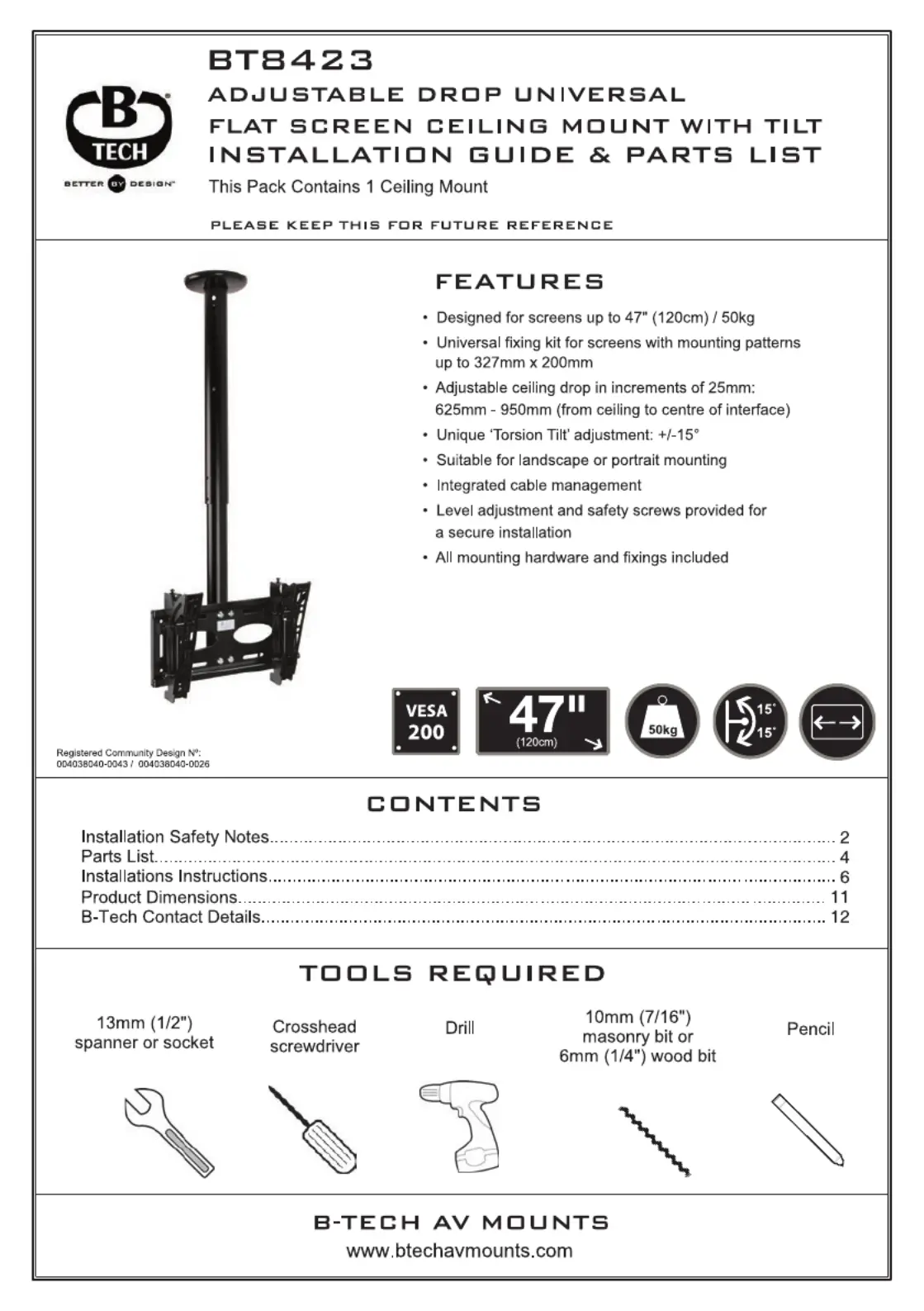 Läs gratis den bruksanvisning för B-tech BT8423 (12 sidor) i kategorin Platt panelstöd. Guiden har ansetts hjälpsam av 19 personer och har ett genomsnittsbetyg på 4.3 stjärnor baserat på 10 recensioner. Har du en fråga om B-tech BT8423 eller vill du ställa frågor till andra användare av produkten? Ställ en fråga
