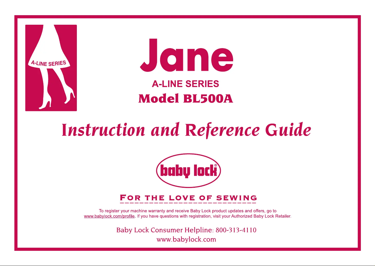 Baby Lock Jane - BL500A Bruksanvisning