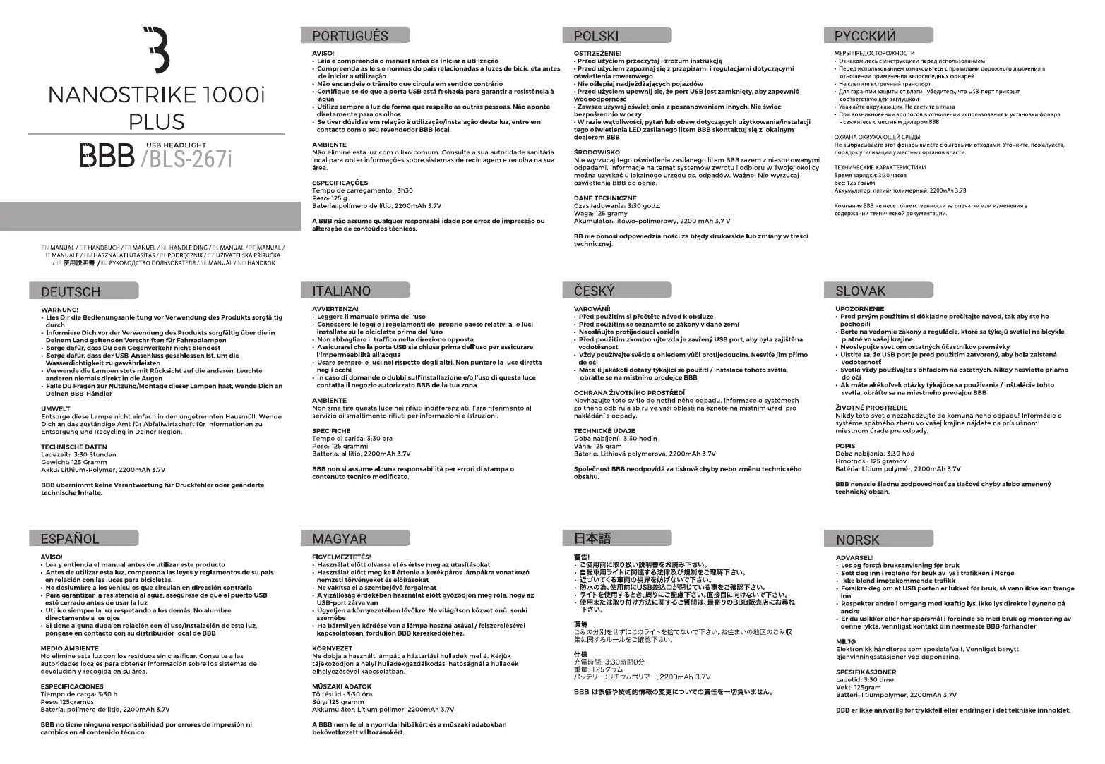 BBB NanoStrike 1000i BLS-267i Bruksanvisning