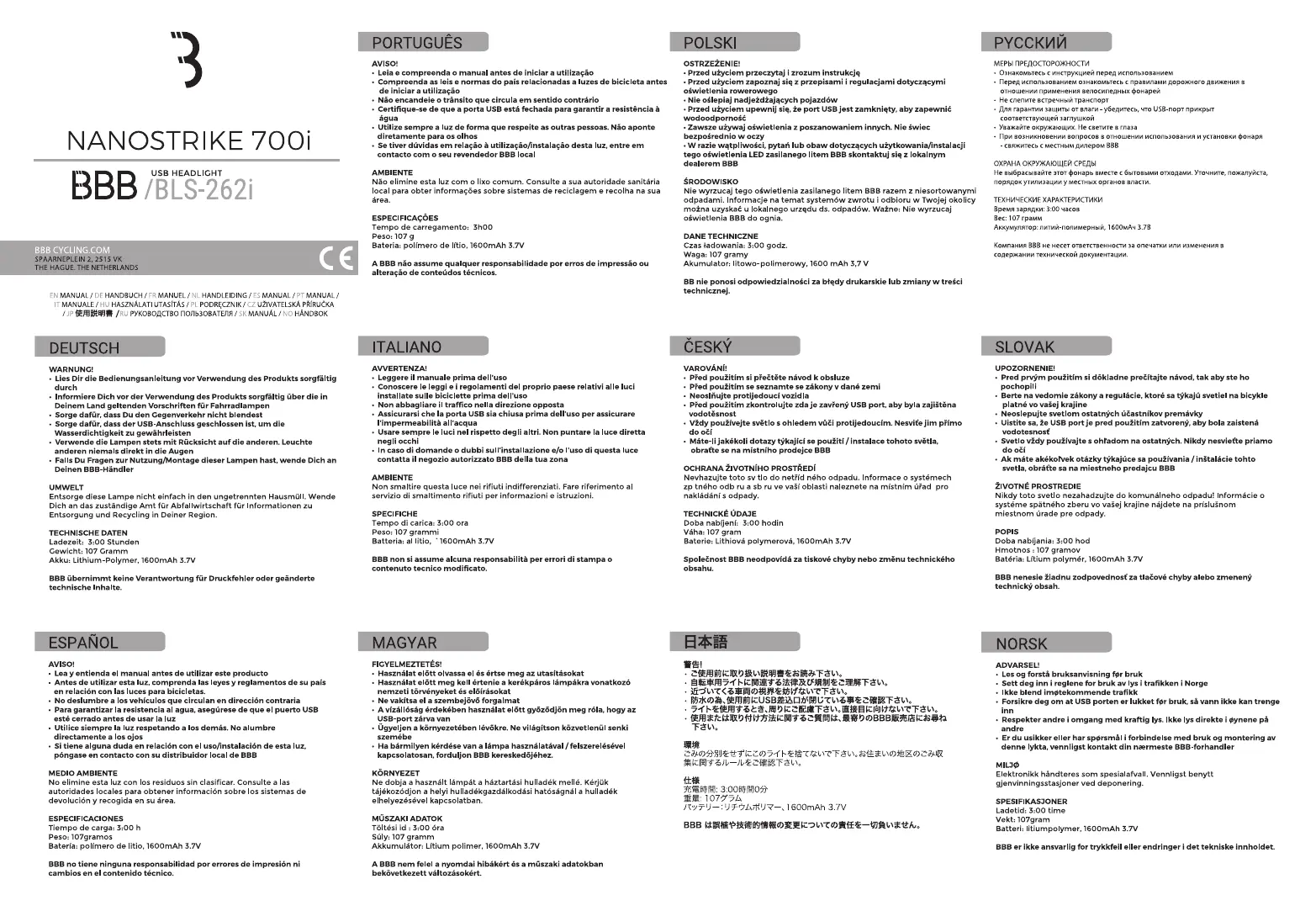 BBB NanoStrike 700i BLS-262i Bruksanvisning