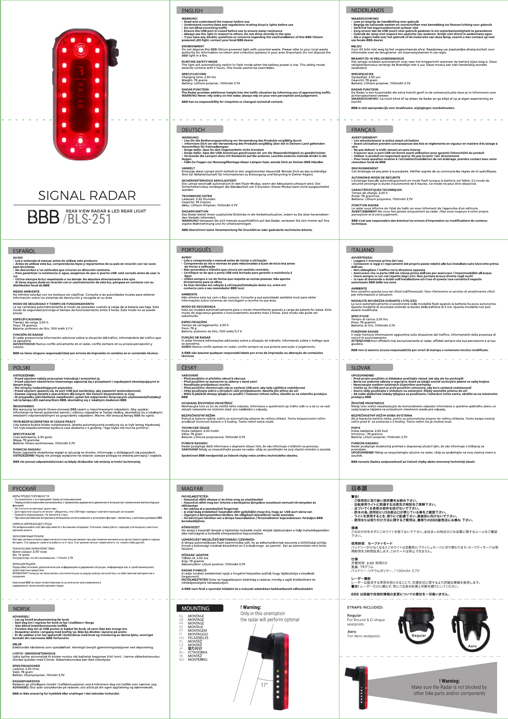 Läs gratis den bruksanvisning för BBB Signal BLS-251 (2 sidor) i kategorin Cykellampa. Guiden har ansetts hjälpsam av 2 personer och har ett genomsnittsbetyg på 4.8 stjärnor baserat på 6 recensioner. Har du en fråga om BBB Signal BLS-251 eller vill du ställa frågor till andra användare av produkten? Ställ en fråga
