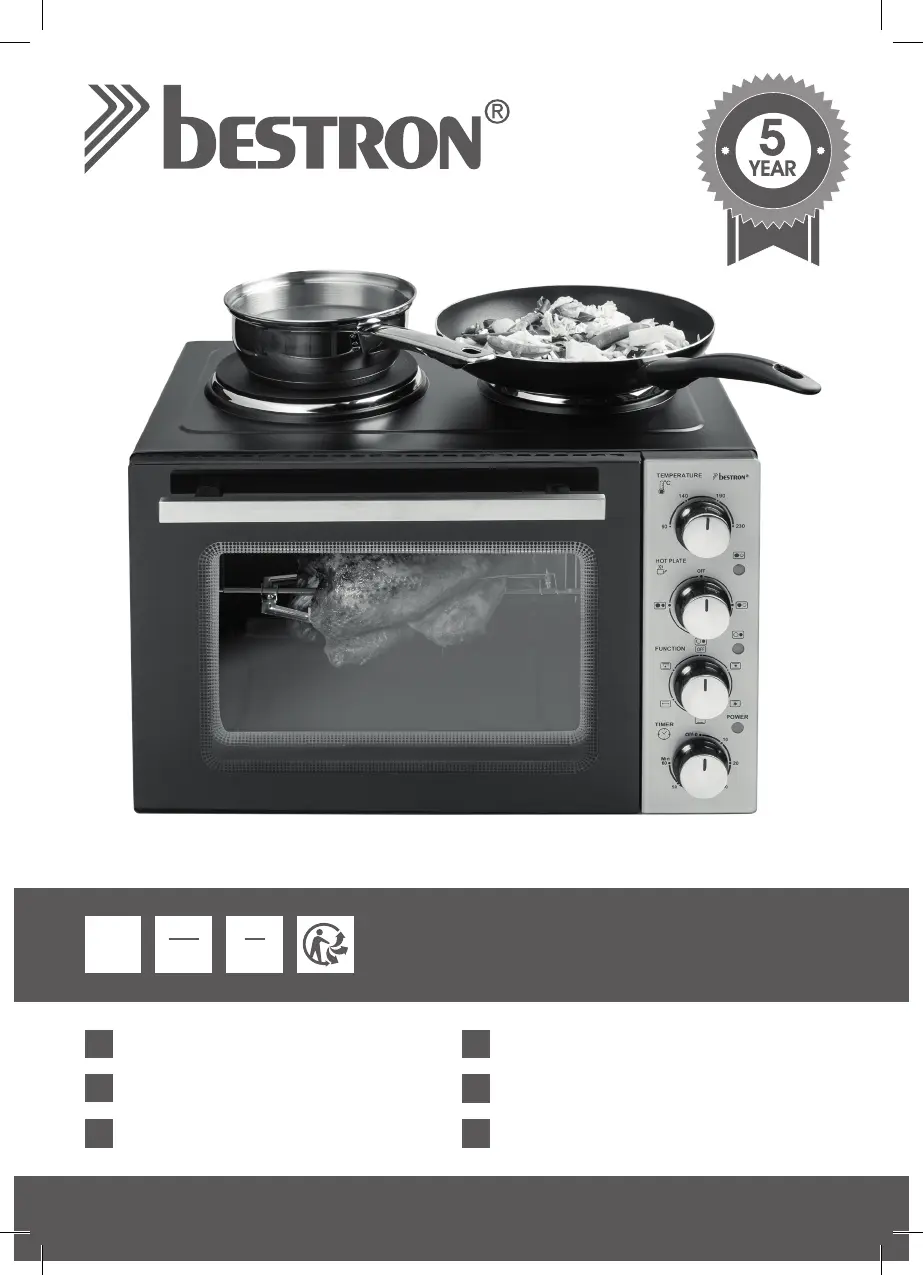 Läs gratis den bruksanvisning för Bestron AOV31CP (60 sidor) i kategorin Ugn. Guiden har ansetts hjälpsam av 10 personer och har ett genomsnittsbetyg på 4.7 stjärnor baserat på 5.5 recensioner. Har du en fråga om Bestron AOV31CP eller vill du ställa frågor till andra användare av produkten? Ställ en fråga