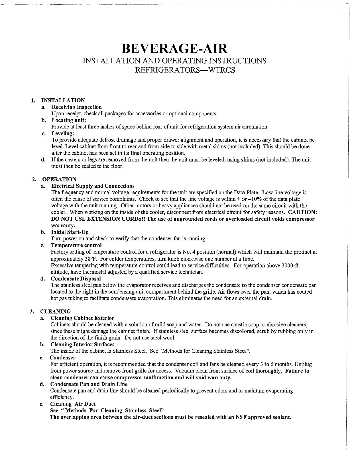 Beverage-Air WTRCS72D-1-FLT Bruksanvisning