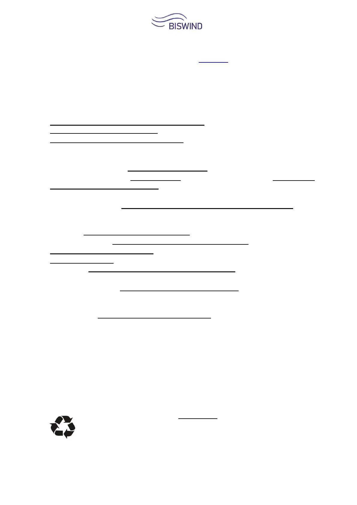VIELEN DANK, DASS SIE SICH FÜR EIN PRODUKT VON BISWIND ENTSCHIEDEN