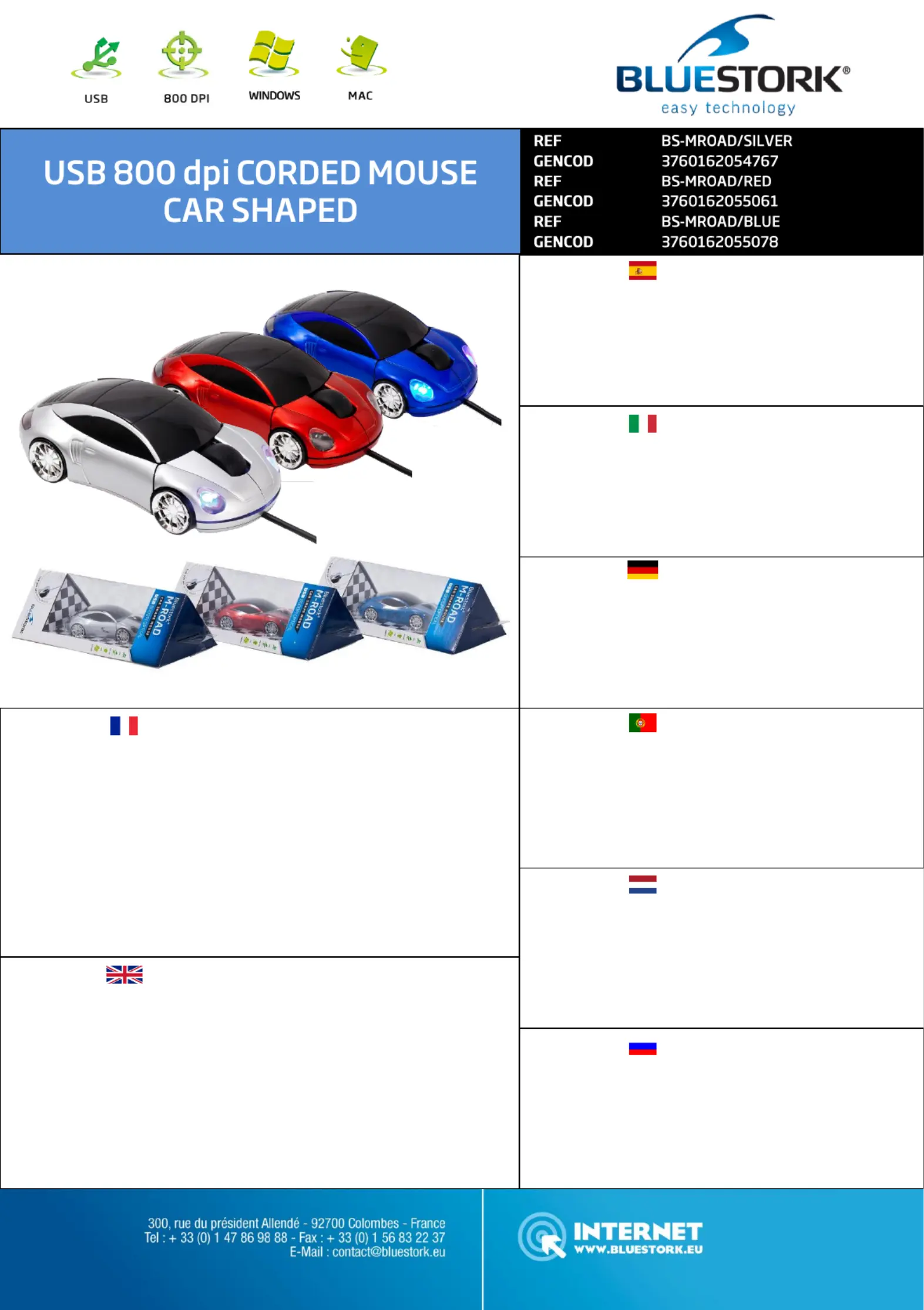 • Souris opque 800 dpi connecteur USB.