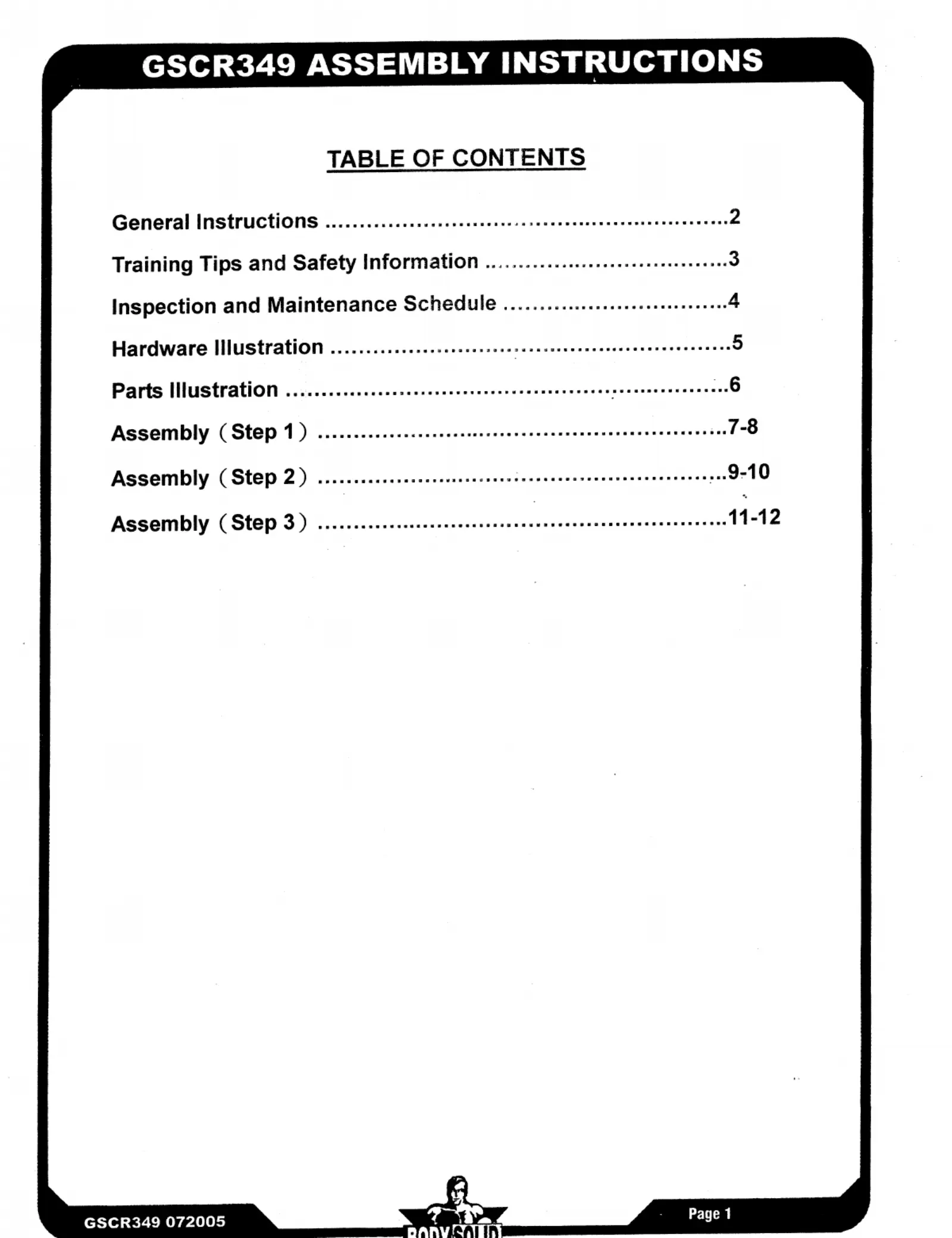 Läs gratis den bruksanvisning för Body Solid GSCR349 (13 sidor) i kategorin träningsutrustning. Guiden har ansetts hjälpsam av 15 personer och har ett genomsnittsbetyg på 4.2 stjärnor baserat på 8 recensioner. Har du en fråga om Body Solid GSCR349 eller vill du ställa frågor till andra användare av produkten? Ställ en fråga