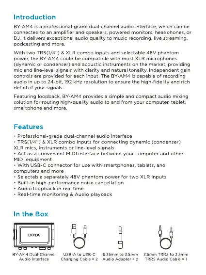 BOYA BY-AM4 Bruksanvisning