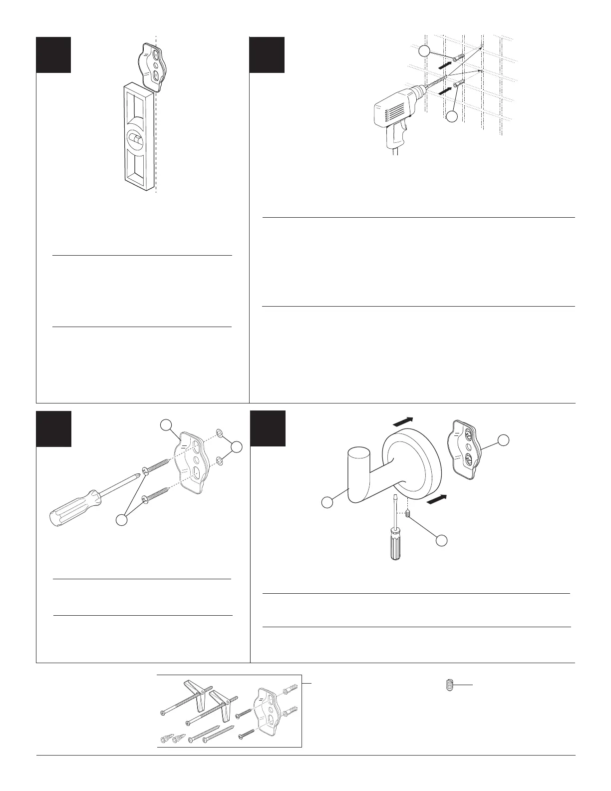 1/4" diameter holes where indicated. Push in plastic anchors (1) until flush with walls. Note: Sheetrock