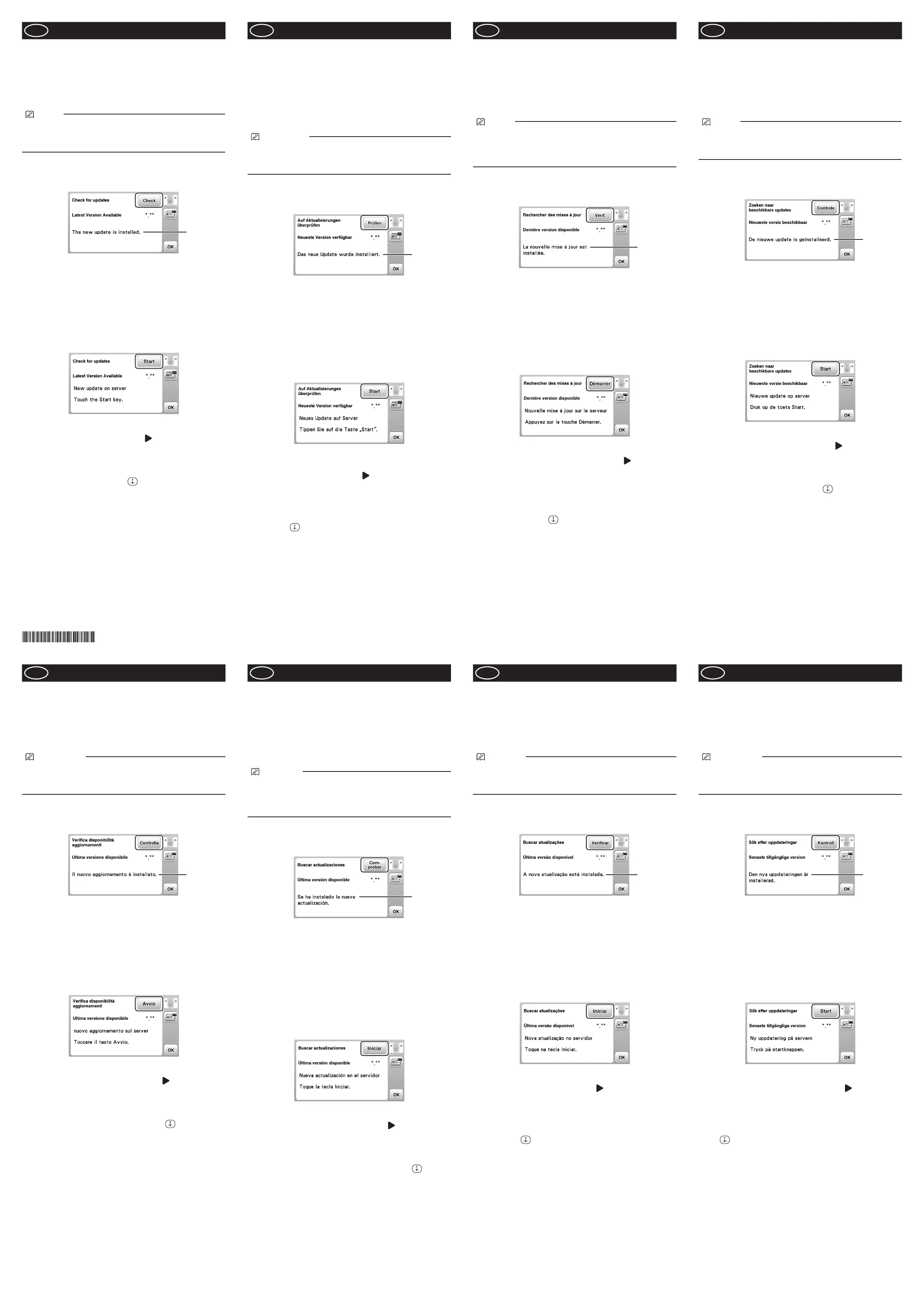A tecla [Verificar] mudará para a tecla [Iniciar]. Atualize o software.