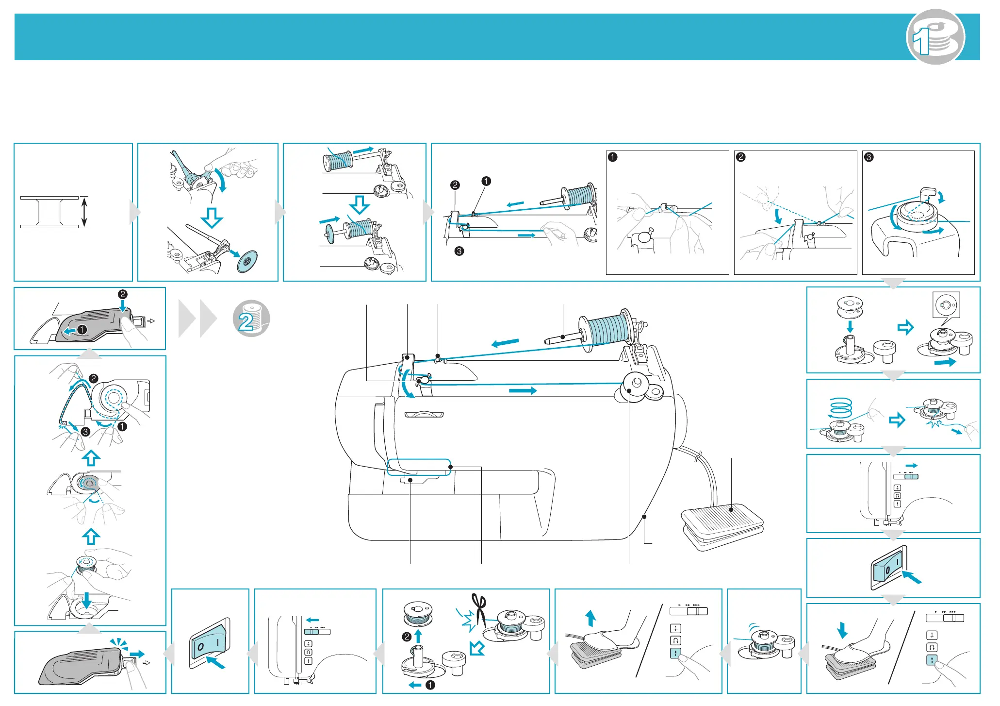 Guía de referencia rápida 1 - Preparación del hilo de la bobina - / Краткий справочник 1 - Подготовка нижней нити