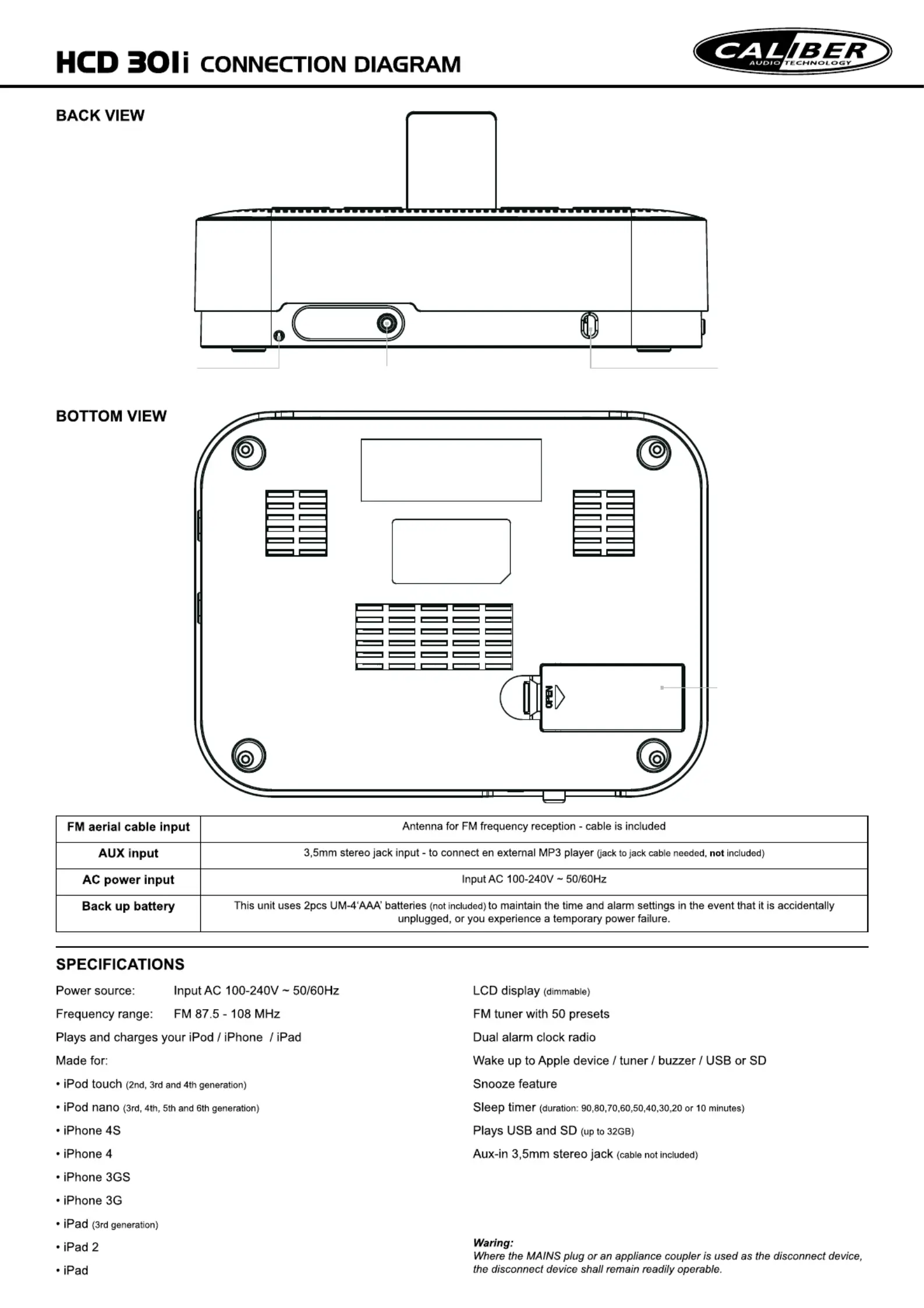 Läs gratis den bruksanvisning för Caliber HCD 301i (16 sidor) i kategorin Klockradio. Guiden har ansetts hjälpsam av 24 personer och har ett genomsnittsbetyg på 5.0 stjärnor baserat på 12.5 recensioner. Har du en fråga om Caliber HCD 301i eller vill du ställa frågor till andra användare av produkten? Ställ en fråga