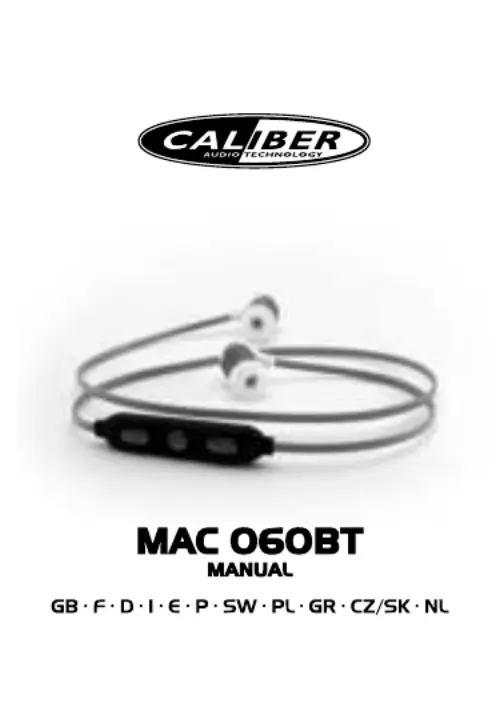 Läs gratis den bruksanvisning för Caliber MAC 060BT (49 sidor) i kategorin Öronpropp. Guiden har ansetts hjälpsam av 11 personer och har ett genomsnittsbetyg på 5.0 stjärnor baserat på 6 recensioner. Har du en fråga om Caliber MAC 060BT eller vill du ställa frågor till andra användare av produkten? Ställ en fråga