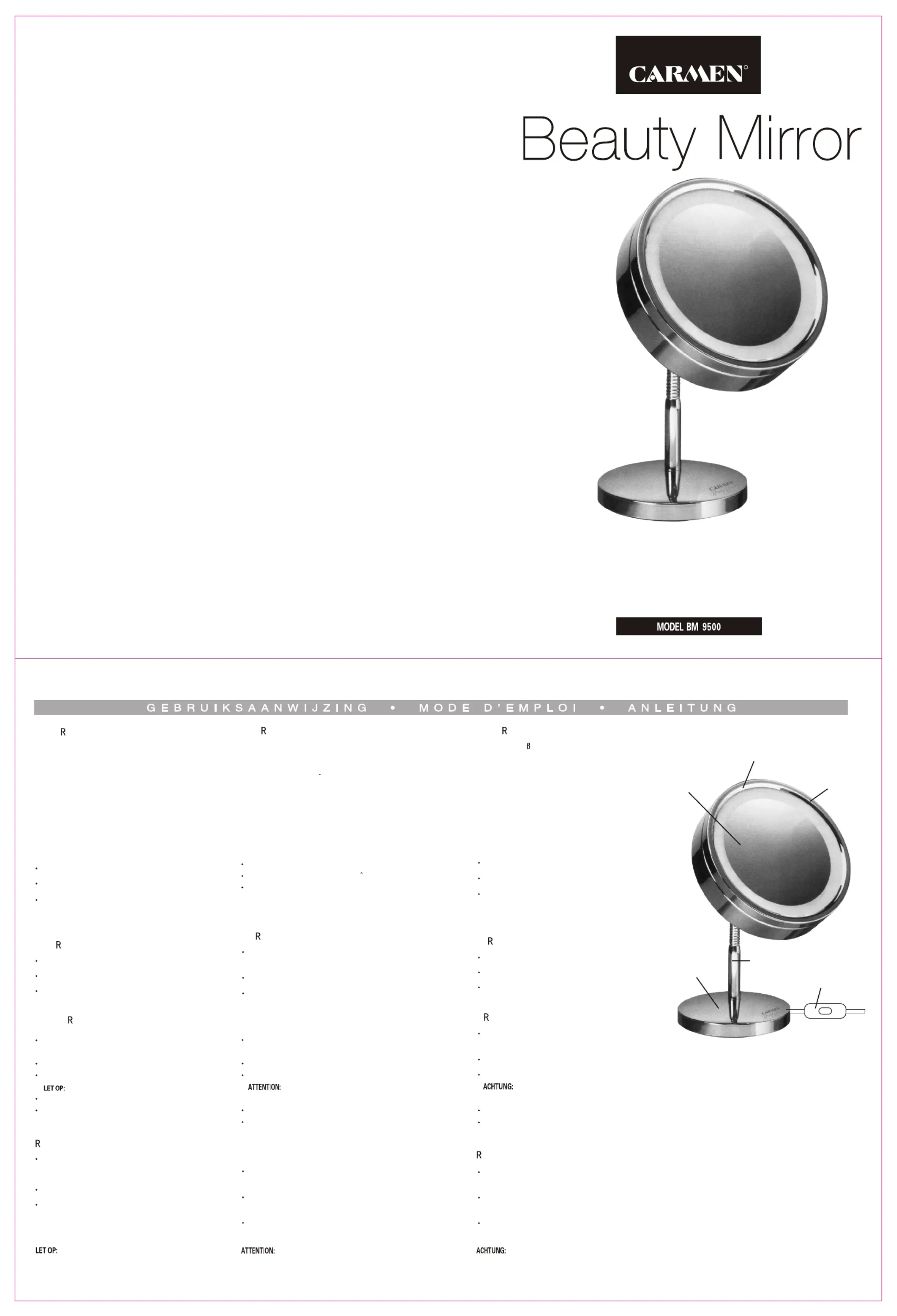 Carmen Beauty Mirror BM9500 Bruksanvisning