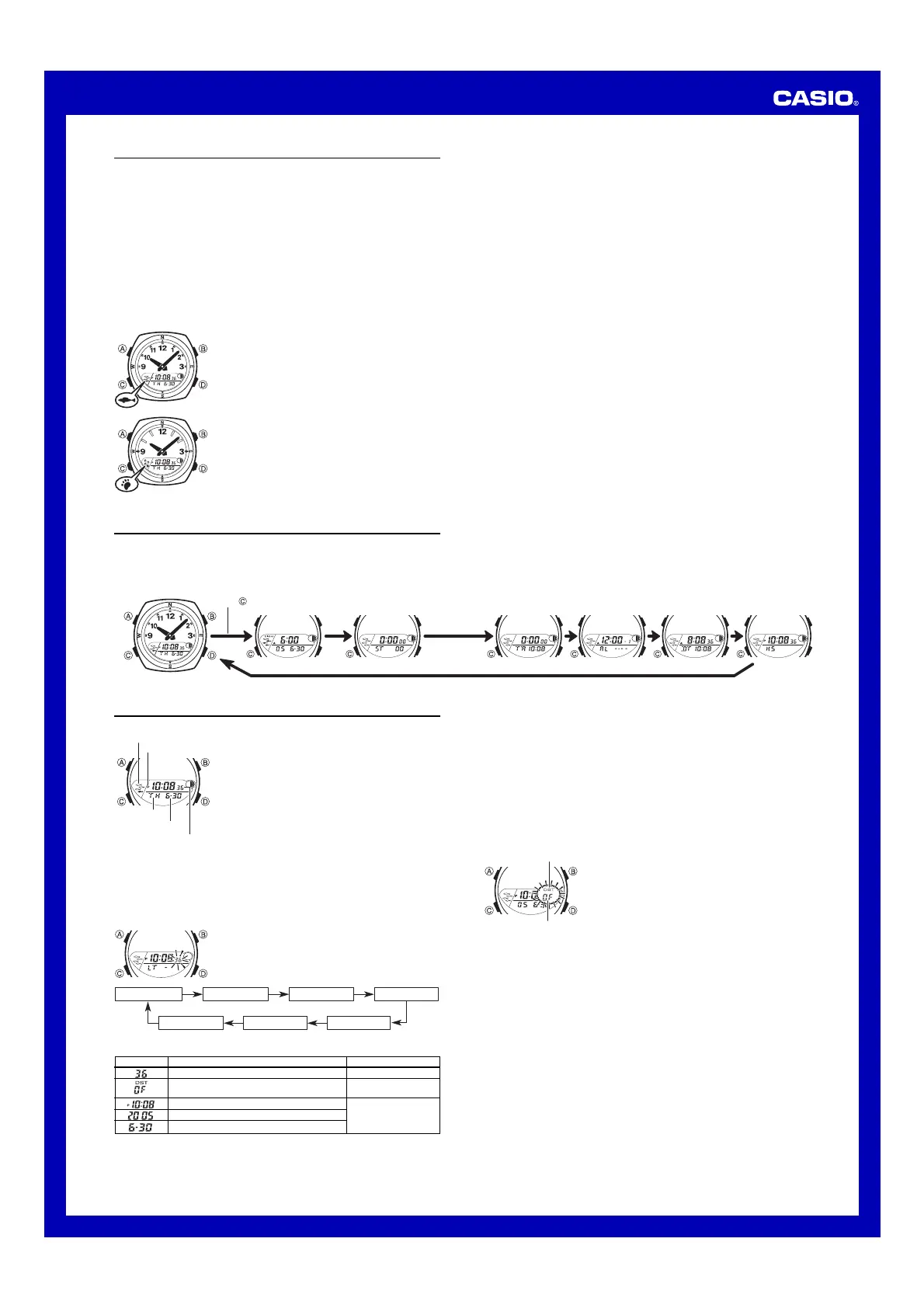 1. In the Timekeeping Mode, hold down A until the seconds