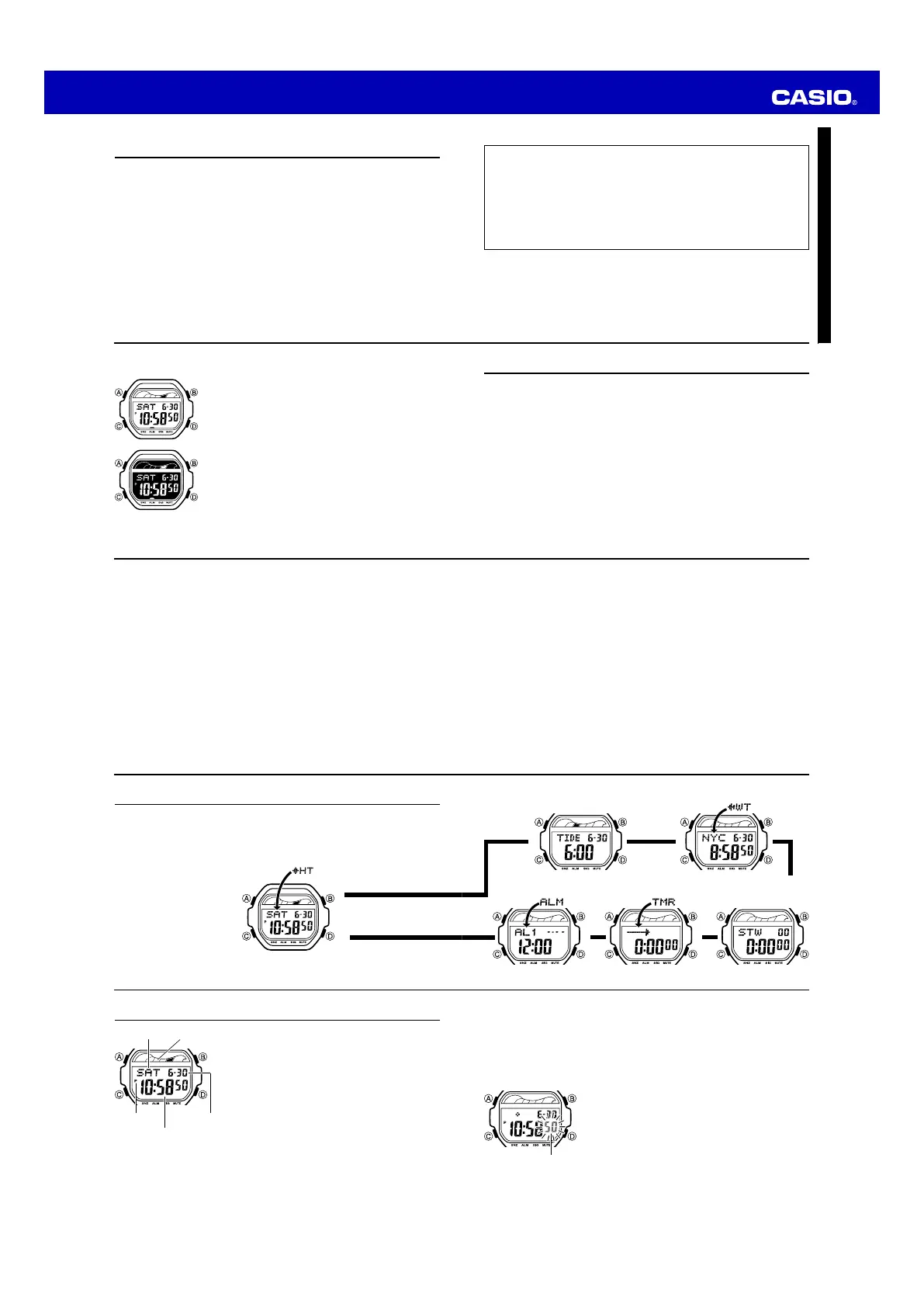 • This watch is not an instrument for calculating low tide and high tide times. The