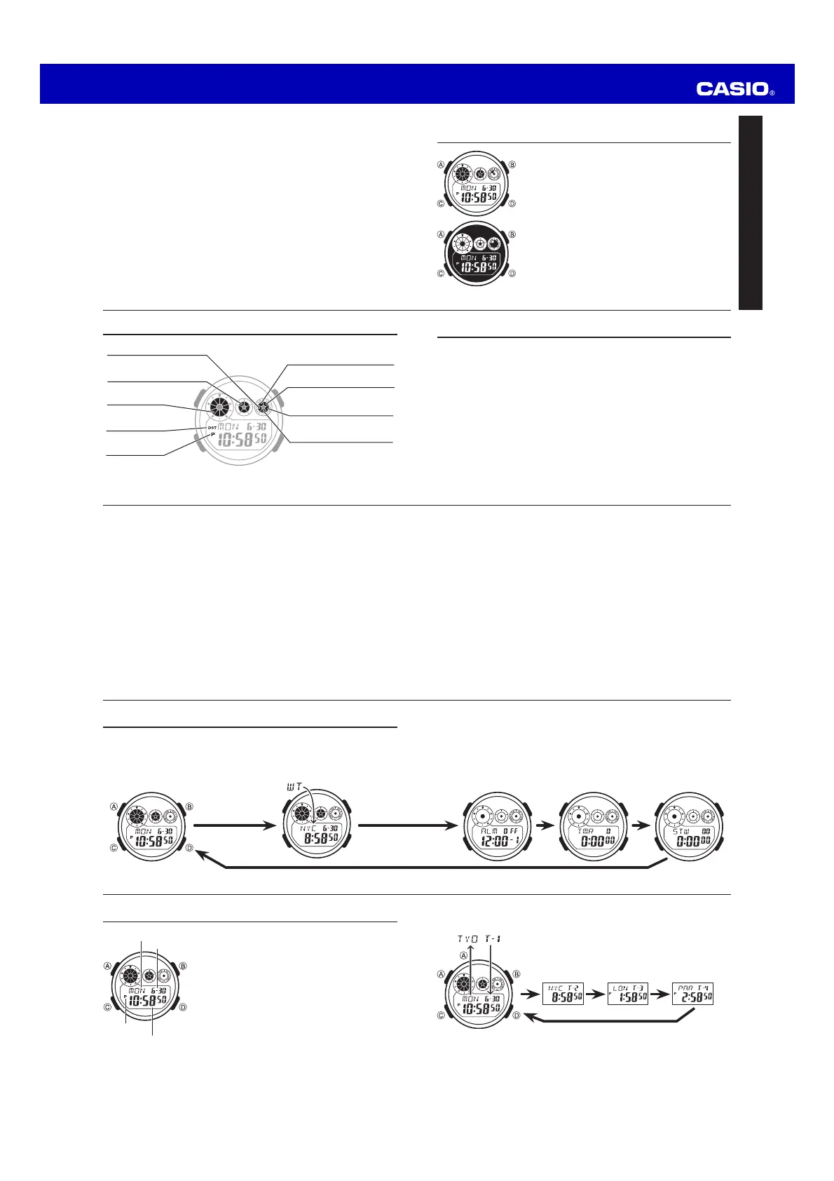 Each press of D cycles the time screens in the sequence shown below.