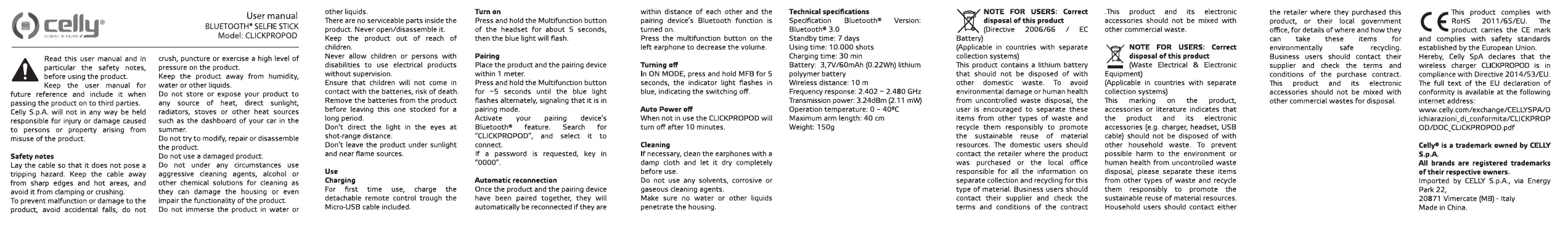 Celly Click Propod Bruksanvisning