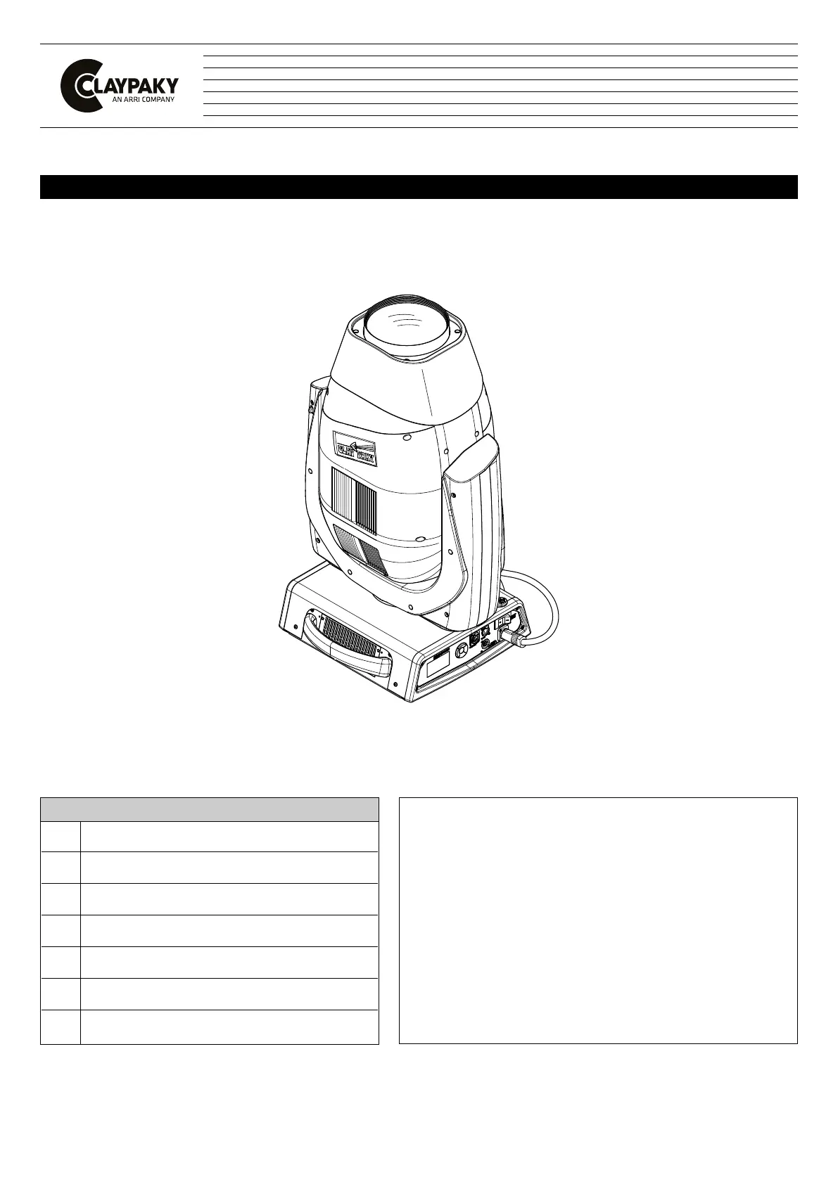 IMPORTANT: Claypaky recommande de lire attentivement et de conserver les informations de sécurité relatives à