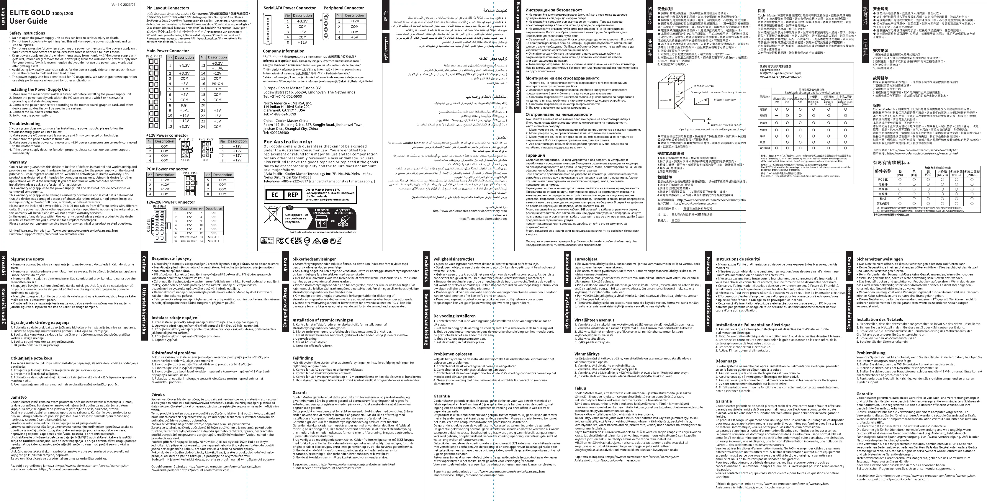 Cooler Master Elite Gold 1200 Bruksanvisning
