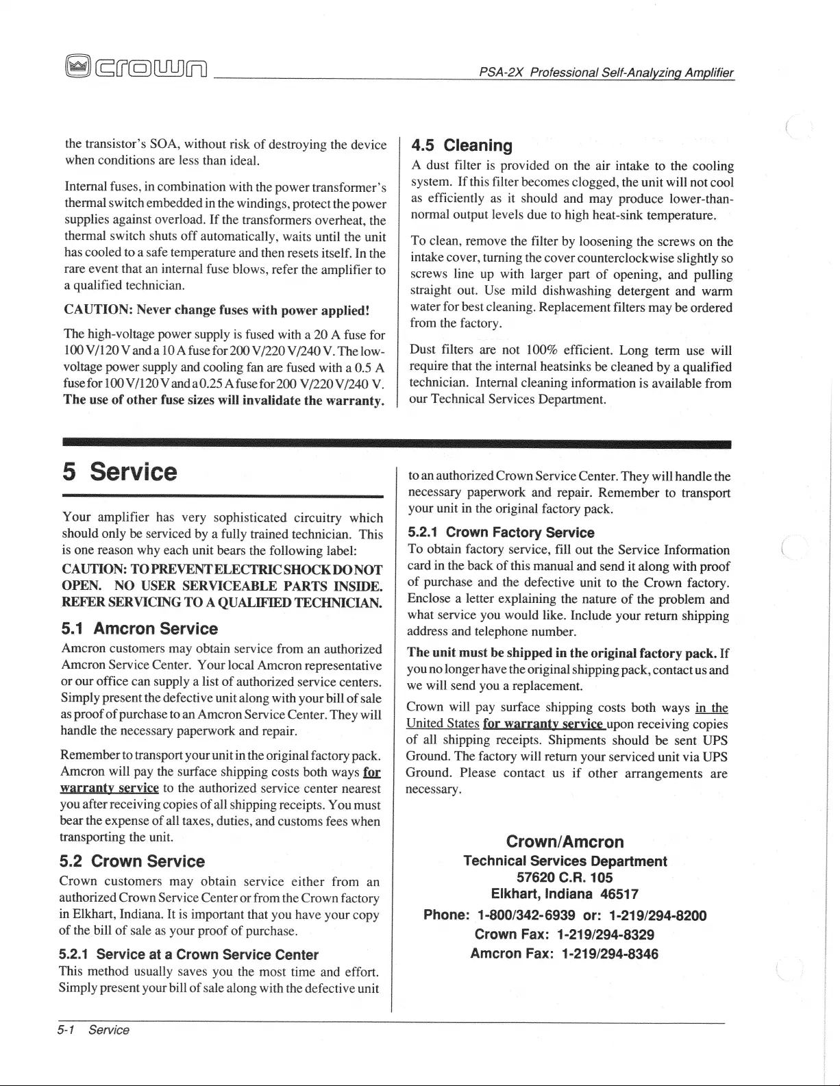 Crown PSA-2X Bruksanvisning