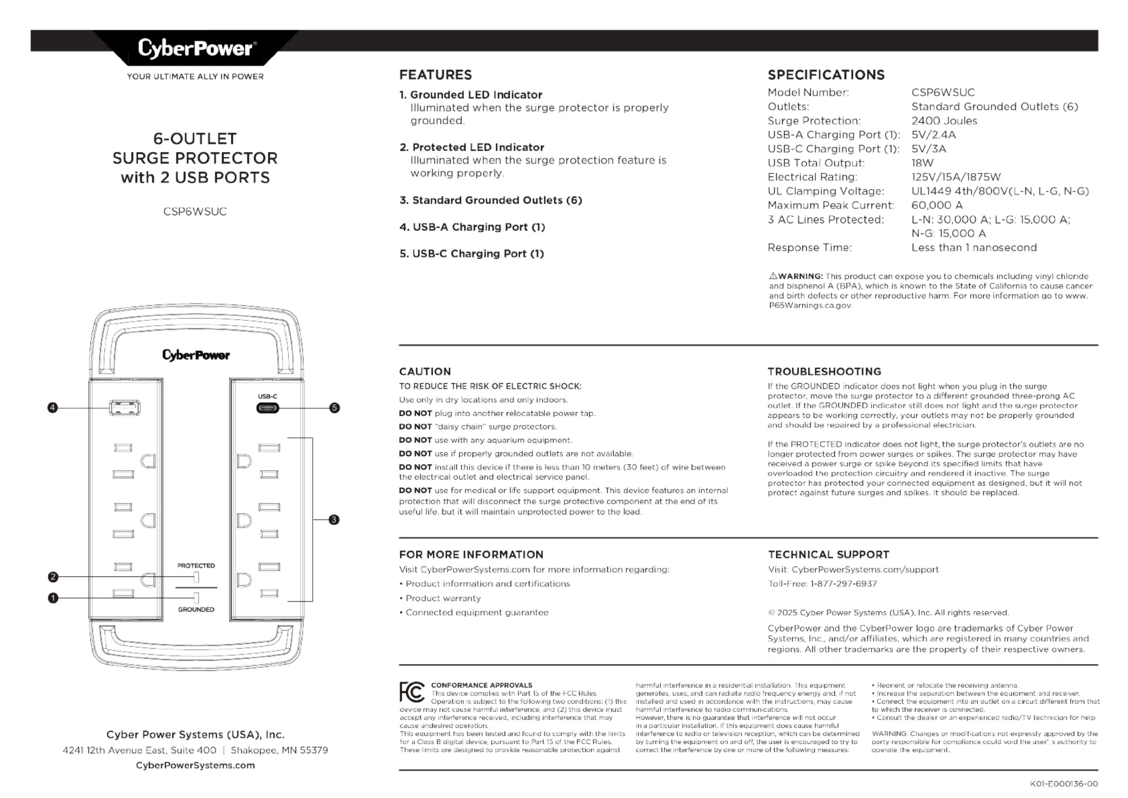 Läs gratis den bruksanvisning för CyberPower CSP6WSUC (1 sidor) i kategorin ej kategoriserat. Guiden har ansetts hjälpsam av 2 personer och har ett genomsnittsbetyg på 4.6 stjärnor baserat på 7 recensioner. Har du en fråga om CyberPower CSP6WSUC eller vill du ställa frågor till andra användare av produkten? Ställ en fråga