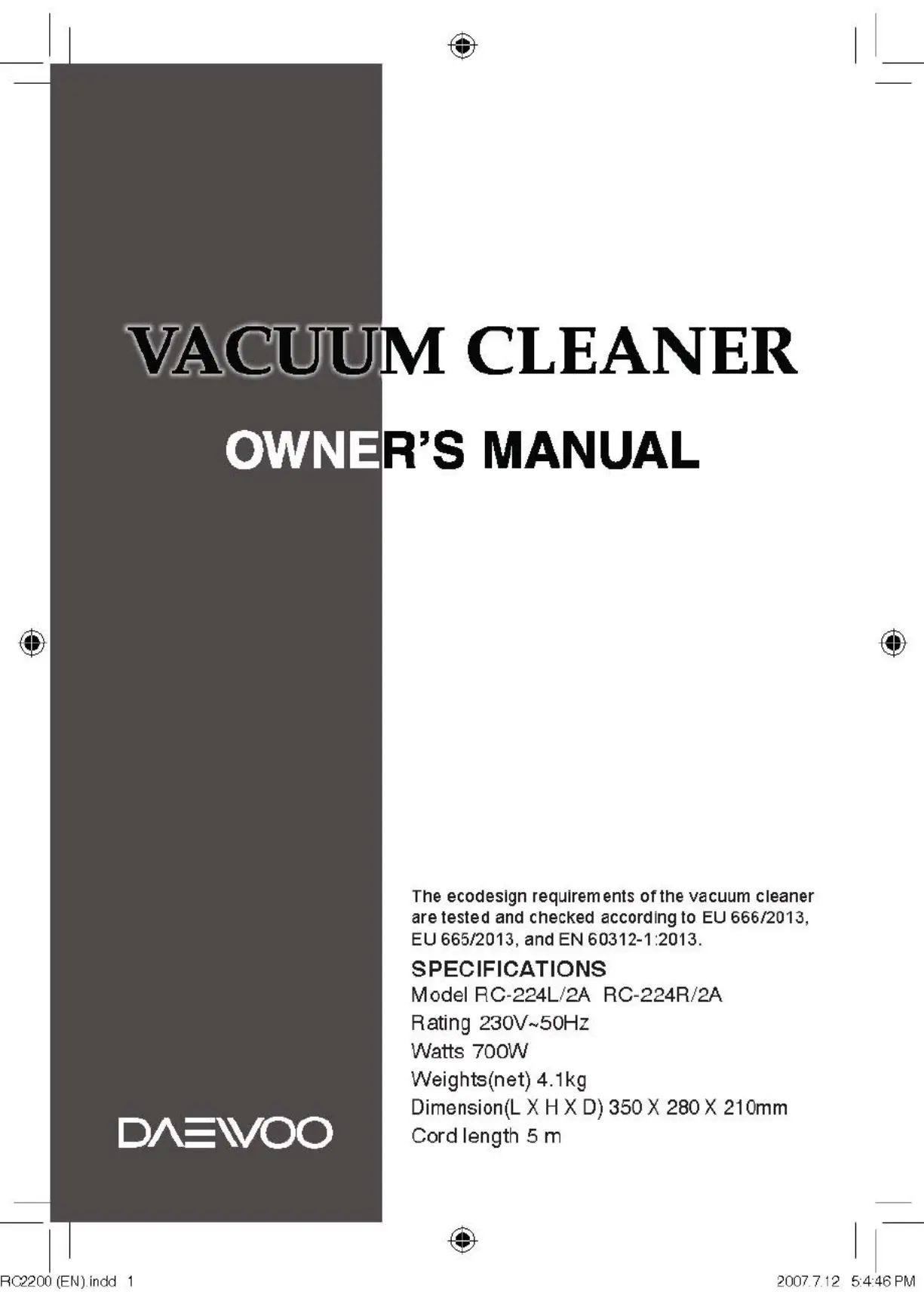 dammsugare Daewoo Manualer