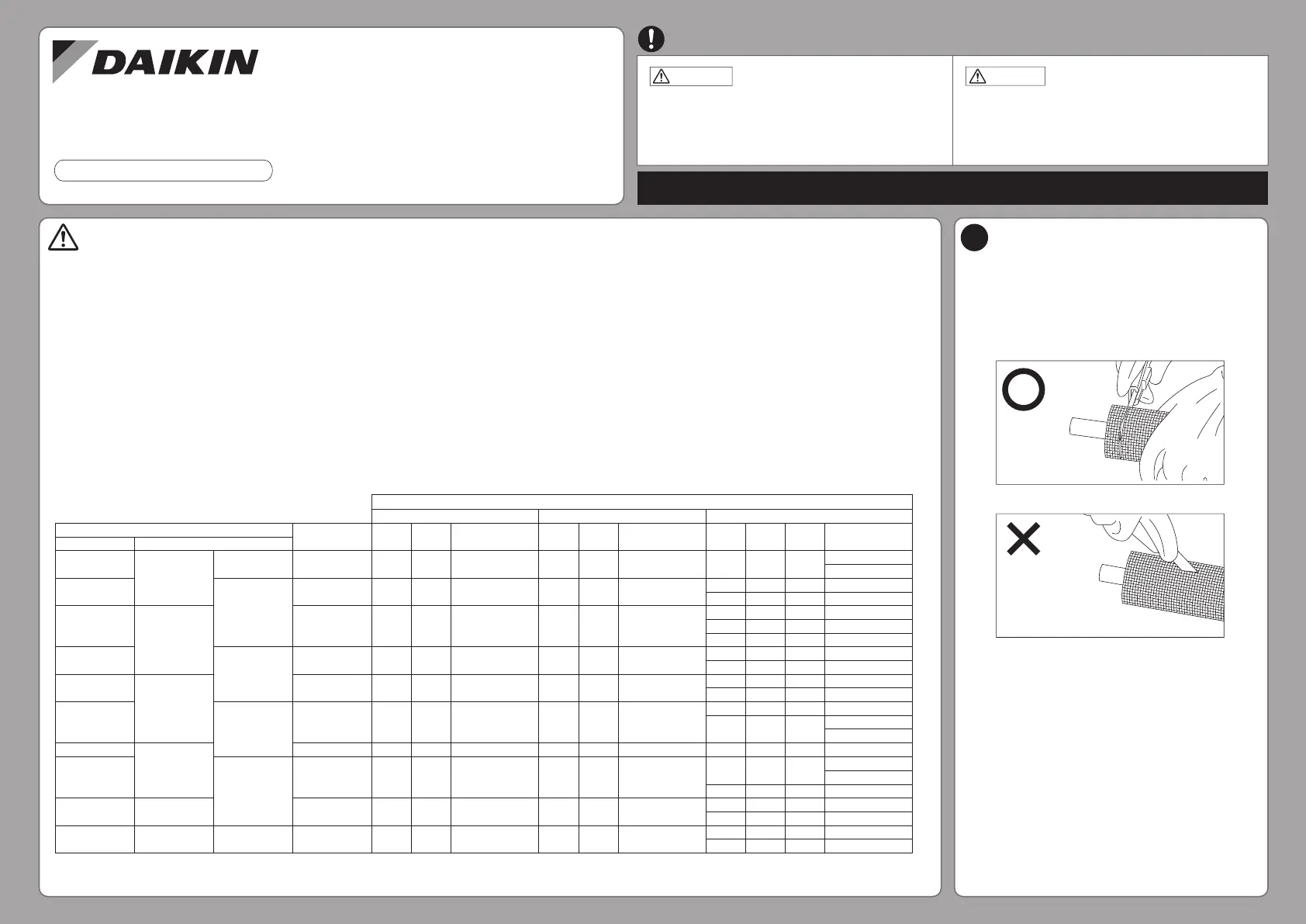 • Please perform the installation work, select insulation, and perform heat insulation construction in accordance with