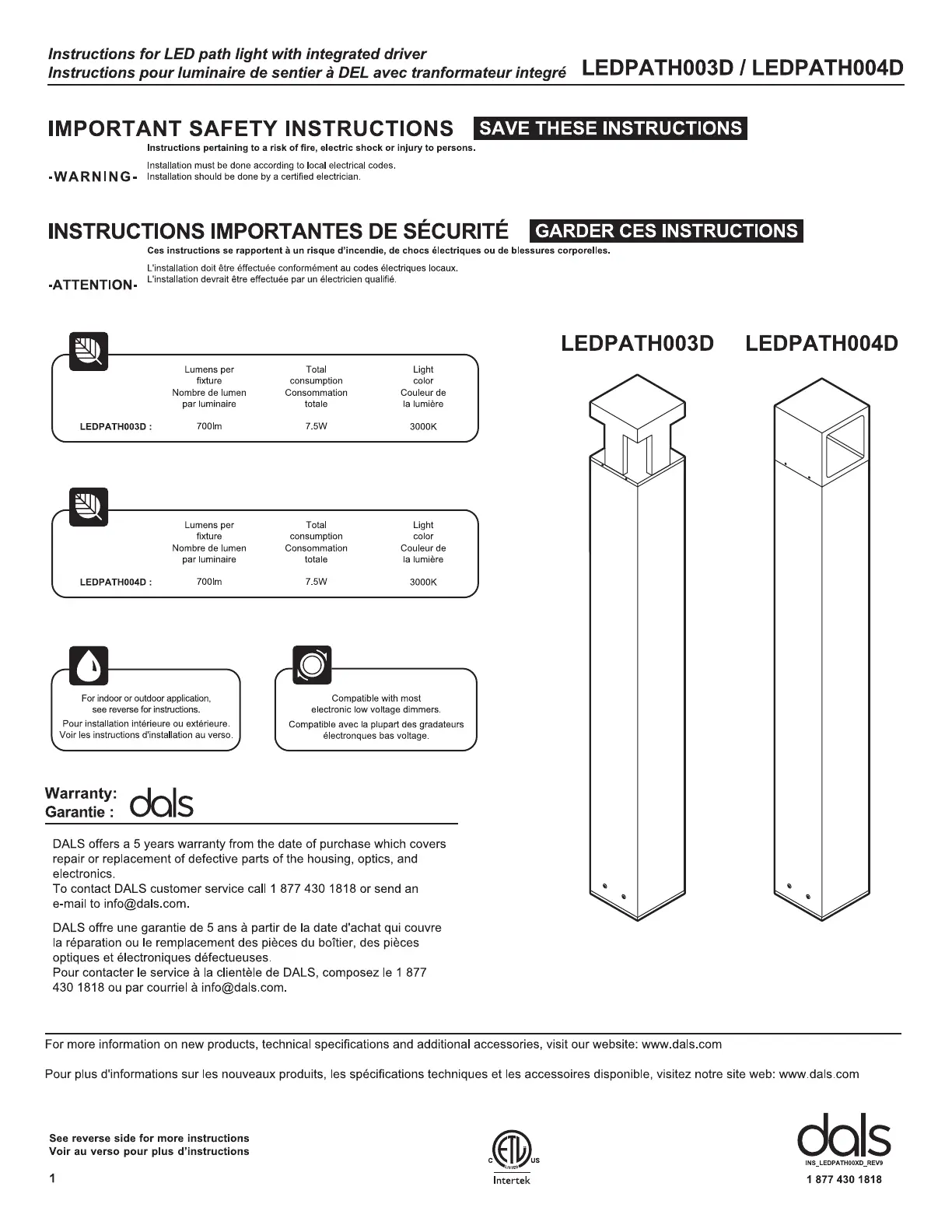 Dals Stature LEDPATH004D Bruksanvisning
