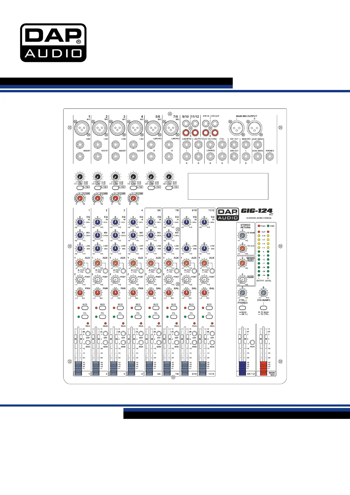 Läs gratis den bruksanvisning för DAP Audio GIG-124C (24 sidor) i kategorin Mixerkonsol. Guiden har ansetts hjälpsam av 11 personer och har ett genomsnittsbetyg på 4.6 stjärnor baserat på 6 recensioner. Har du en fråga om DAP Audio GIG-124C eller vill du ställa frågor till andra användare av produkten? Ställ en fråga