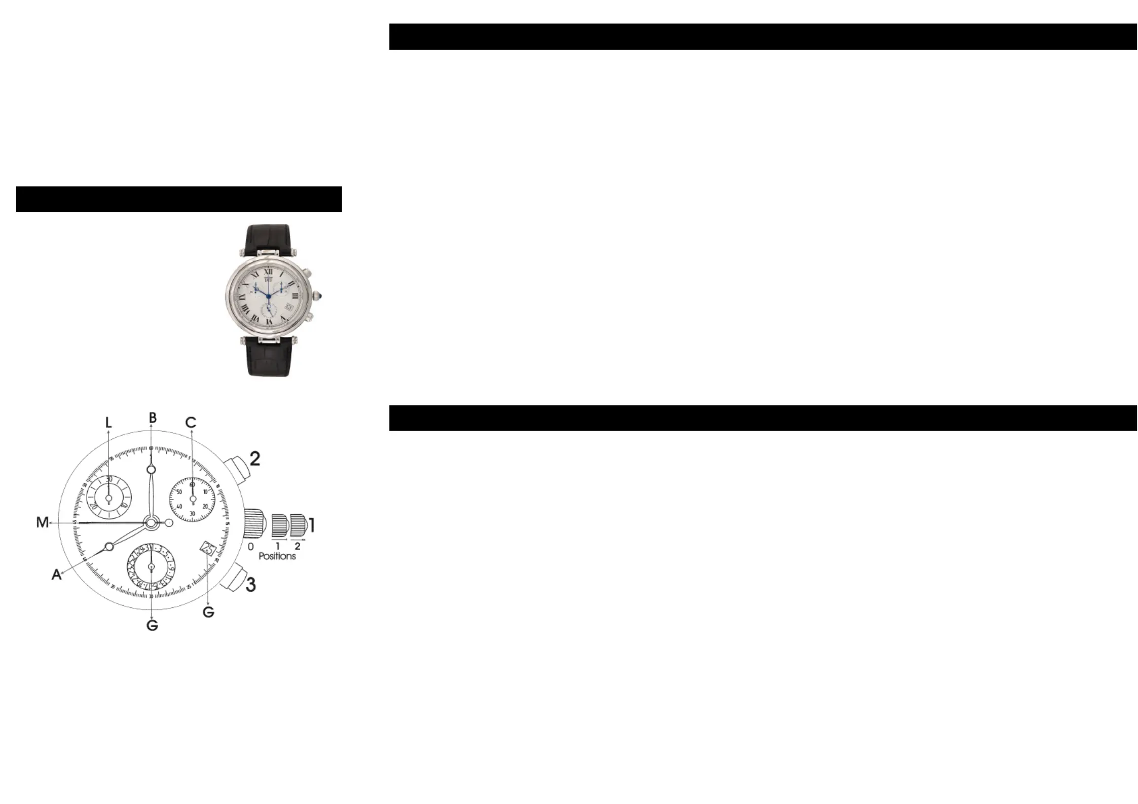 will stop. When stopping the chronograph the hands (L) and (M) will show the correct time.