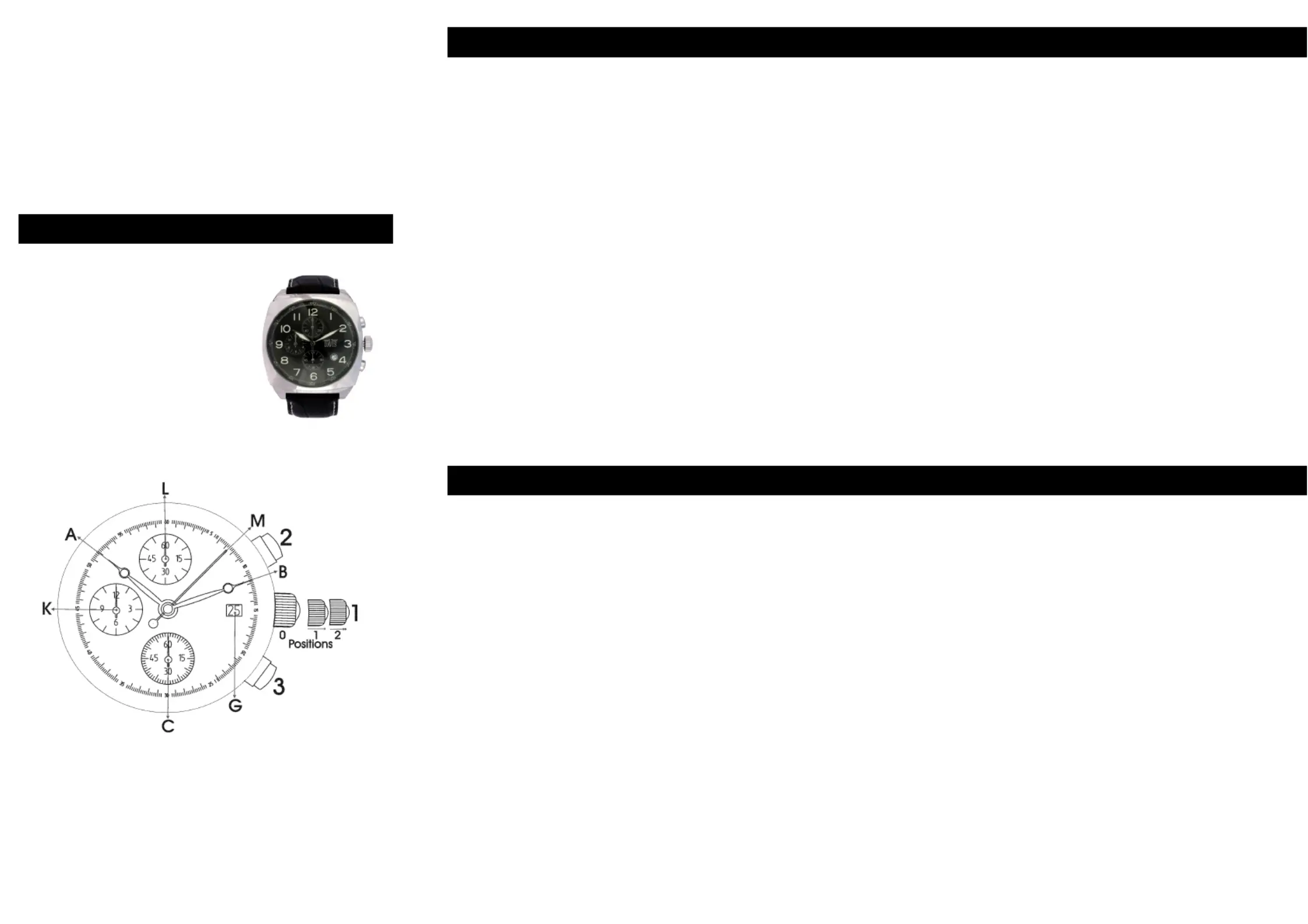 Pull out the crown (1) to position 2. Both hands (M) and (L) will turn