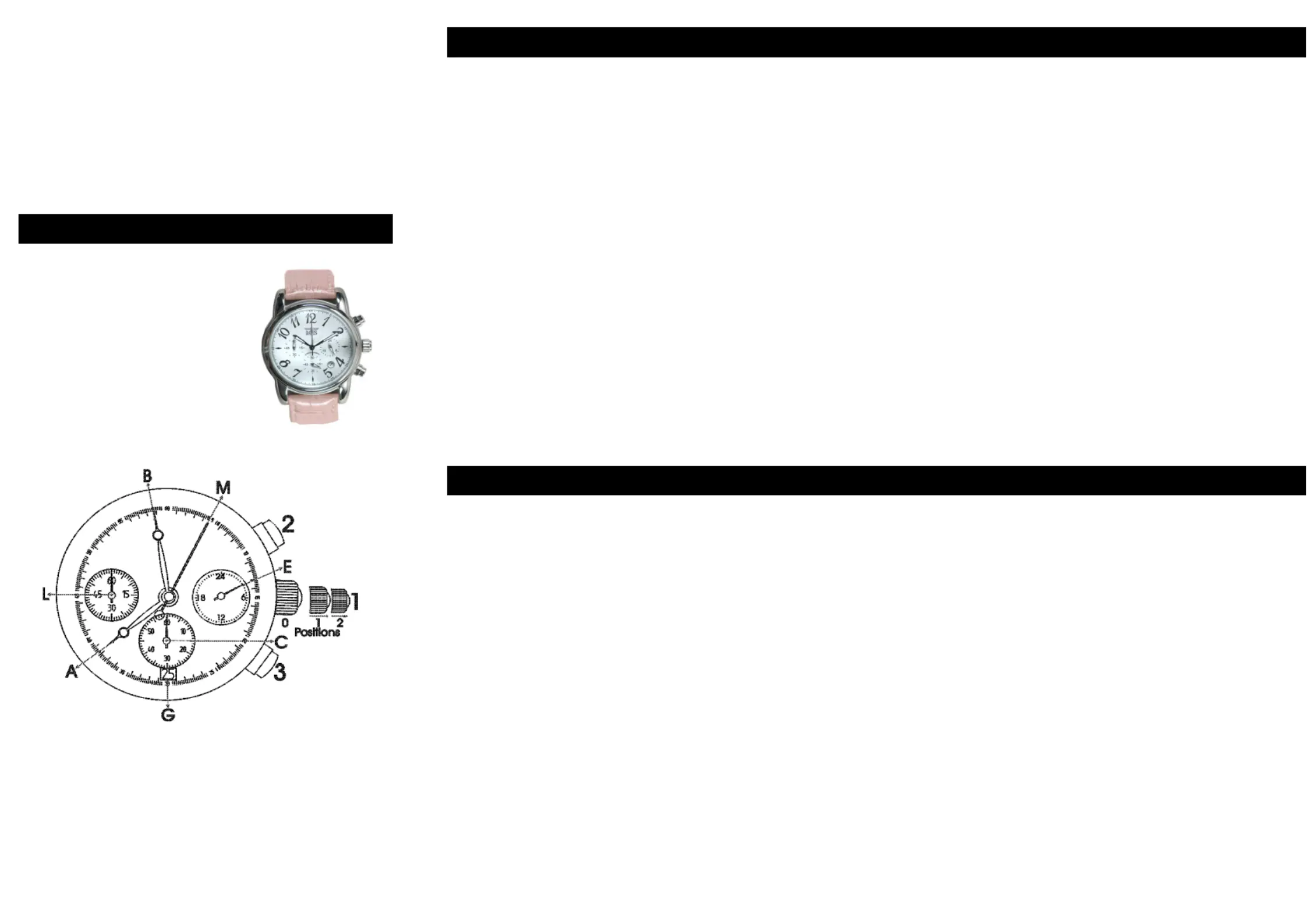 Pull out the crown (1) to position 2. Both hands (M) and (L) will turn