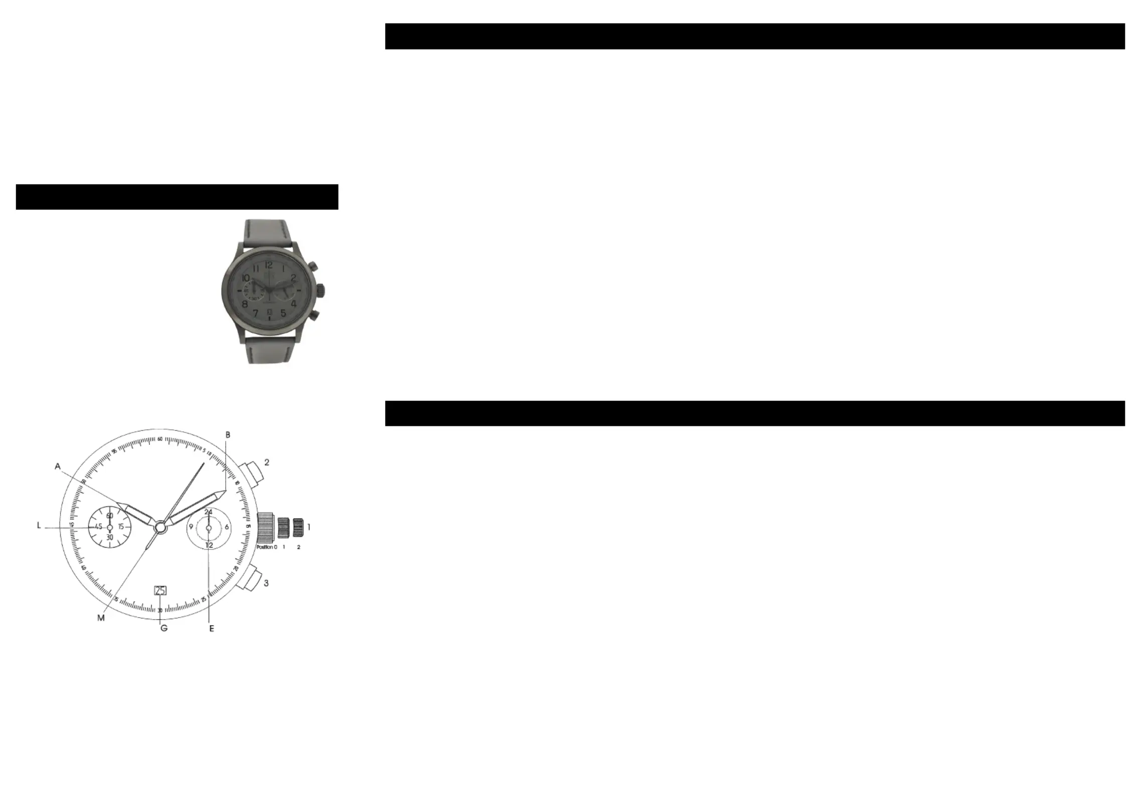 Sekundenzeiger (M) auf den Null Position steht. Zum Schluß drucken Sie die Krone (1)