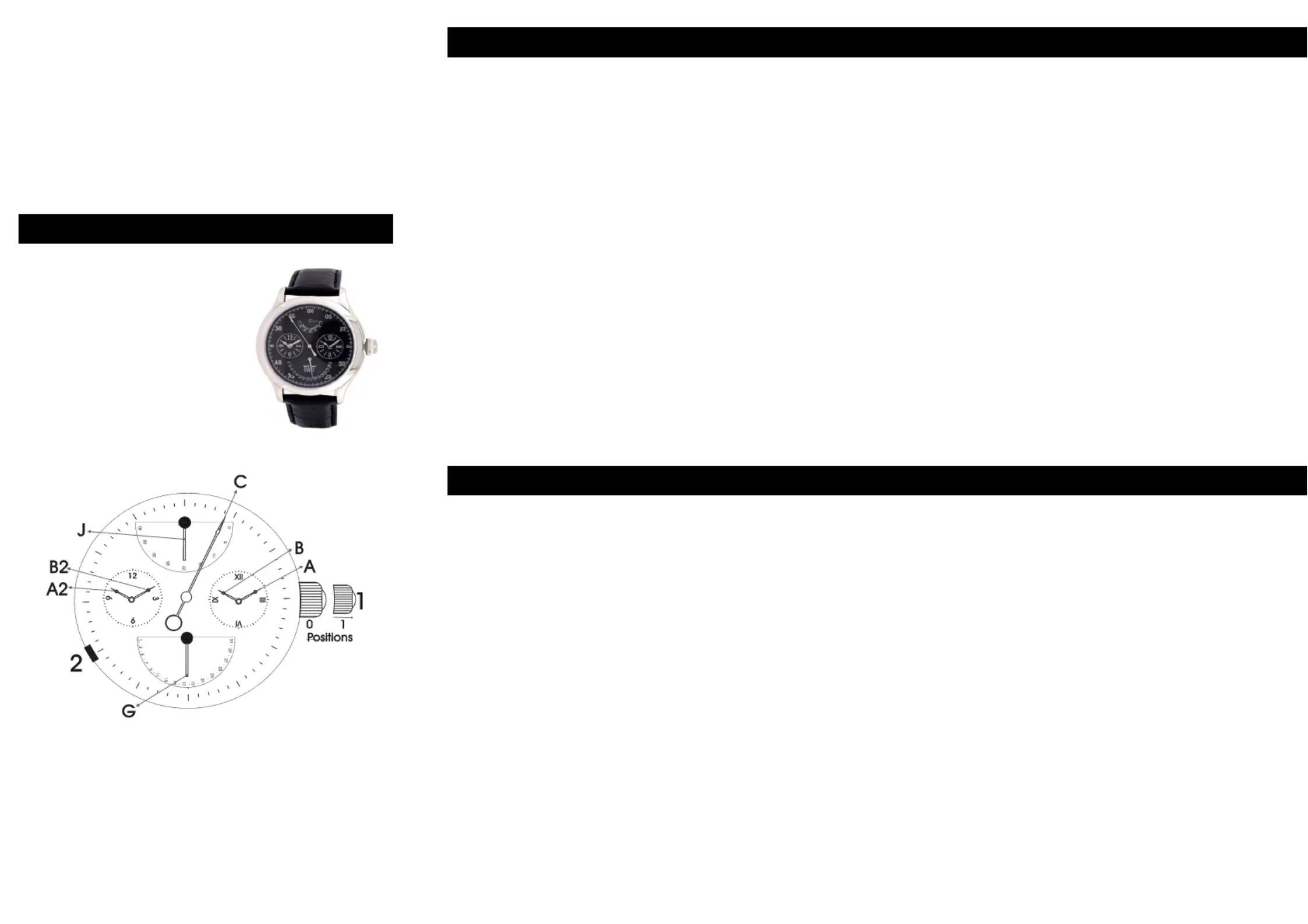 gauche A2/B2 : Régler en premier le 2ieme fuseau horaire - cadran de gauche A2/B2 : Pour